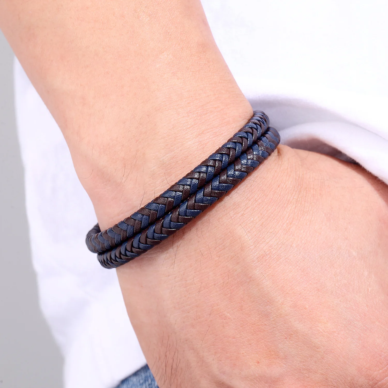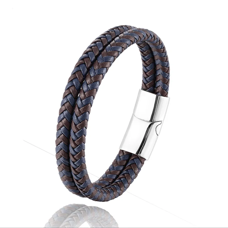Браслет из натуральной кожи мужской, многослойный Плетеный браслет ручной работы из нержавеющей стали в стиле панк, Подарочная бижутерия Вечерние