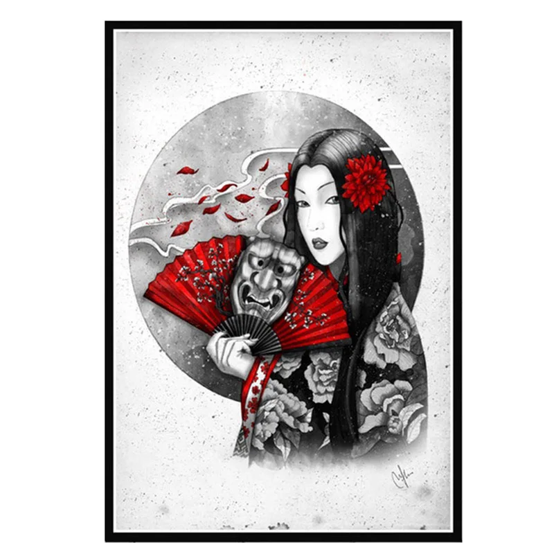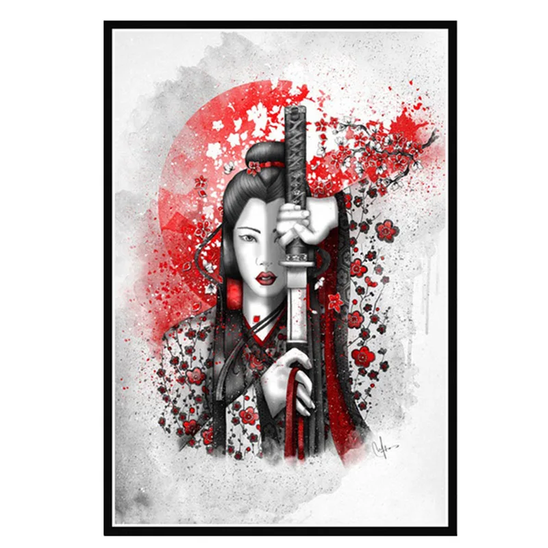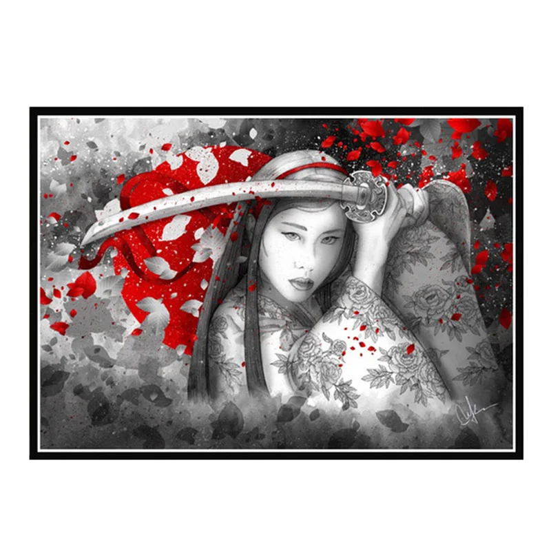 Японский бусхидо 5D алмазная живопись своими руками вышивка крестиком цветущая вишня квадратная круглая Алмазная мозаика вышивка черный красный декор комнаты