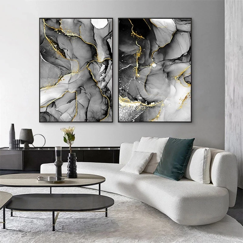 Скандинавский Серый Золотой жидкий искусство мраморная текстура абстрактный настенный художественный плакат на холсте и печать для современного украшения дома гостиной