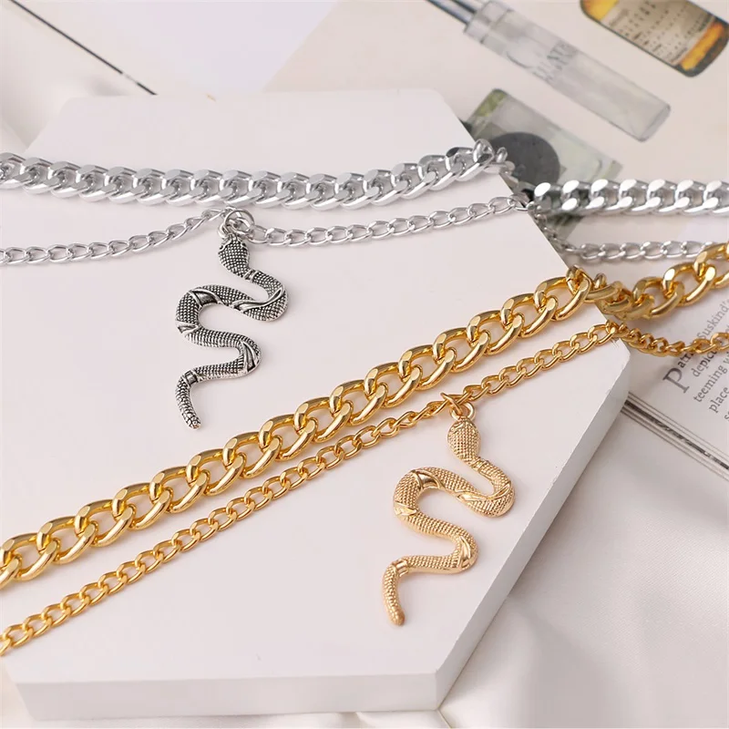 EN ретро многослойная цепочка с подвеской в виде змеи для женщин модное Золотое и Серебряное ожерелье большая толстая цепочка 2021 ювелирные изделия