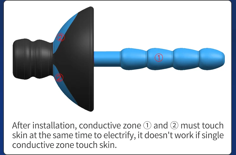 1. Только проводящий 1 (уретральный стержень) и 2 (крышка glans) одновременно прикасайтесь к вашей коже.