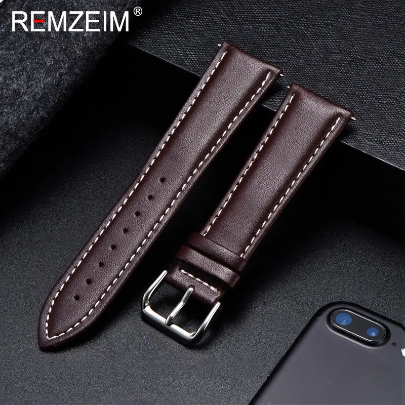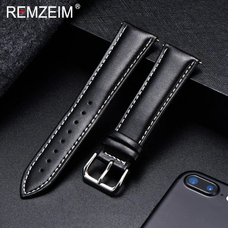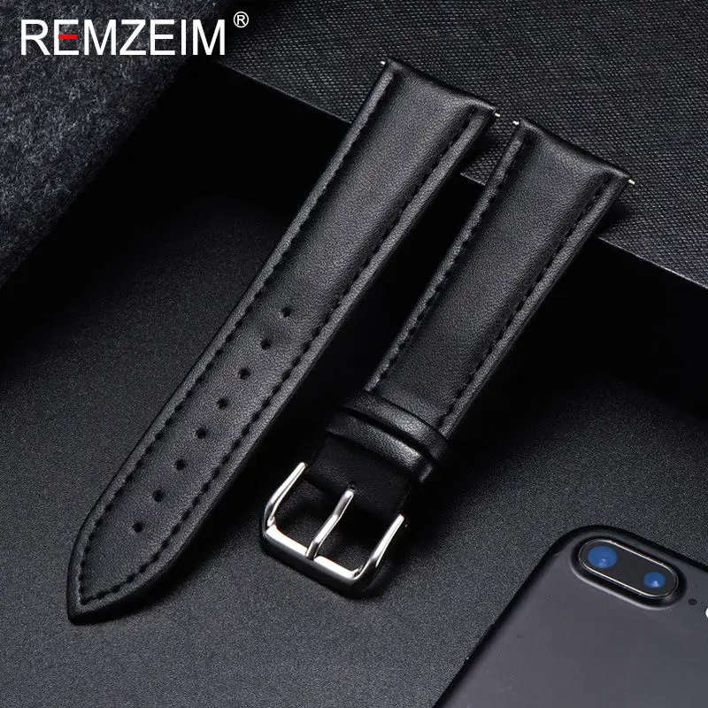 REMZEIM мягкой телячьей кожи Ремешки для мужчин женщин запасные ремешки для часов 16 мм 18 мм20 мм22 мм24 мм повседневные ремешок для наручных часов