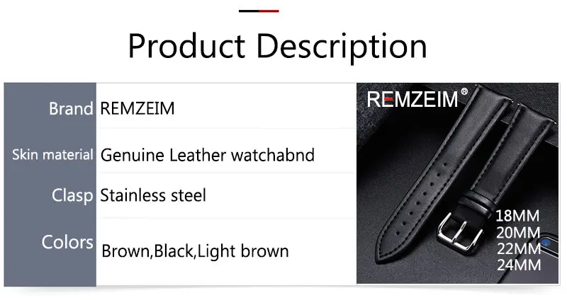 Ремешок для часов REMZEIM из натуральной кожи, черный коричневый ко...