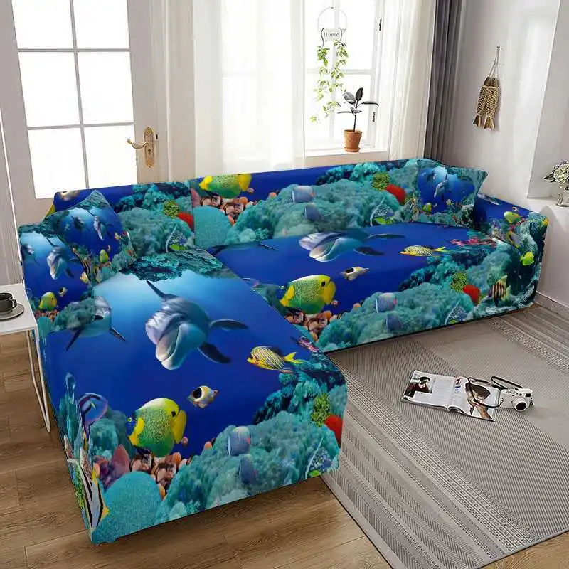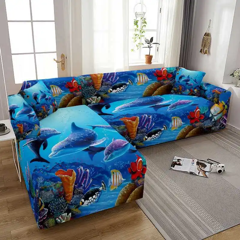 Эластичный чехол для дивана, секционный угловой чехол с рисунком океана, Дельфина, для гостиной, кресла, 234 места