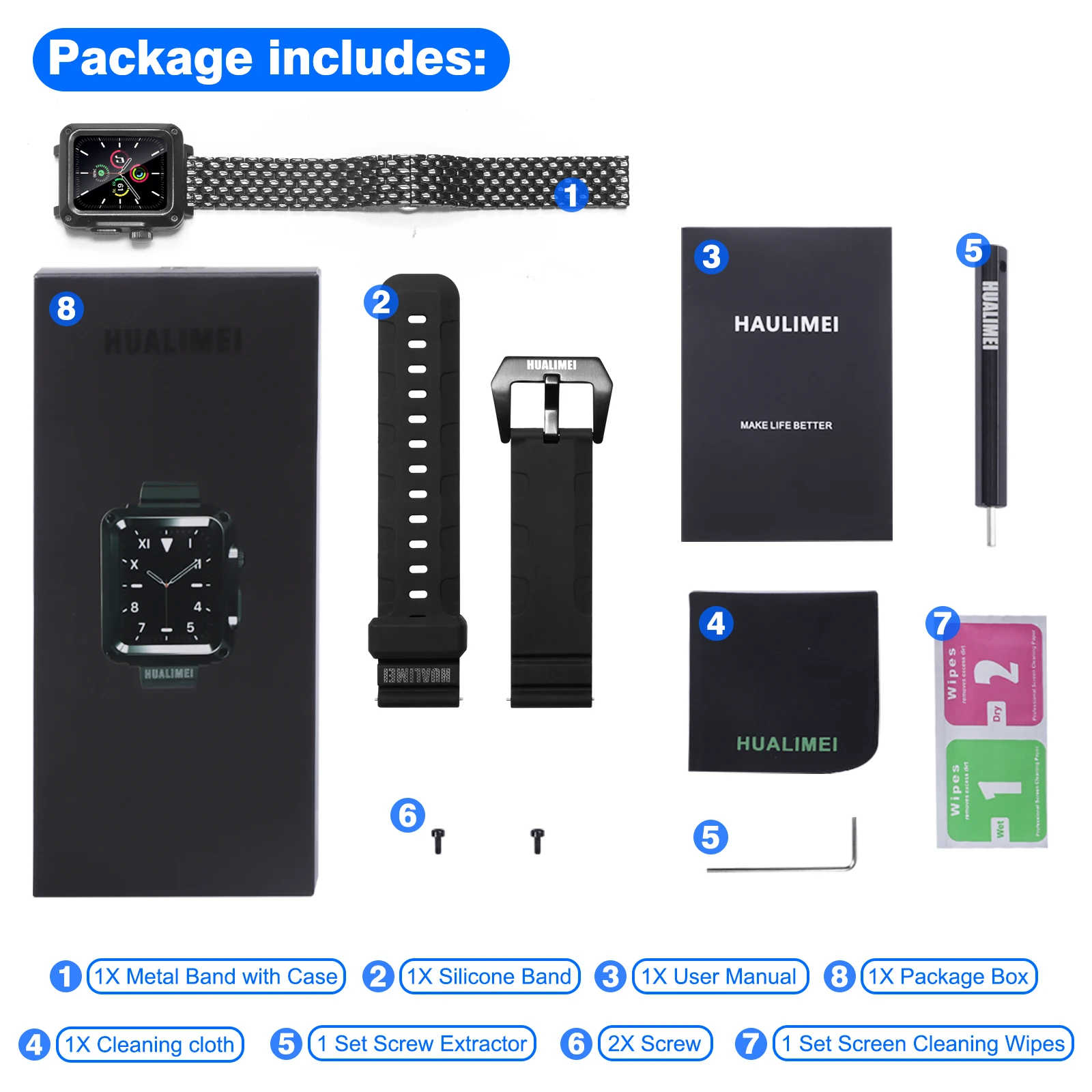 2. Это не только металлический чехол для часов с ремешком, но также со встроенным закаленным стеклом и силиконовым внутренним покрытием, полностью защищающим ваши часы apple watch. (Пожалуйста, снимите защитную пленку перед установкой чехла)