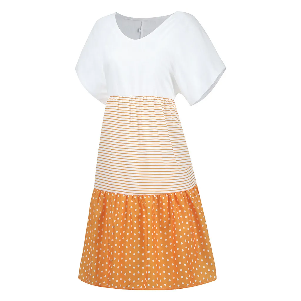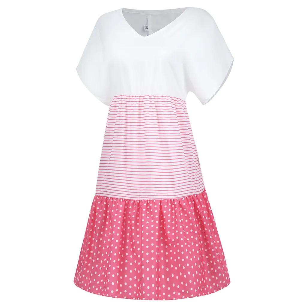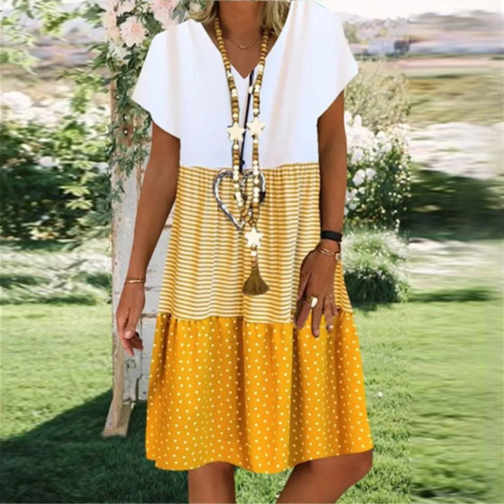 Большой Размеры платье для женщин Лето 2021 повседневные свободные полосатые Цвет шить с принтом в горошек платья для женщин, Дамская обувь для отдыха, с v-образным вырезом #4