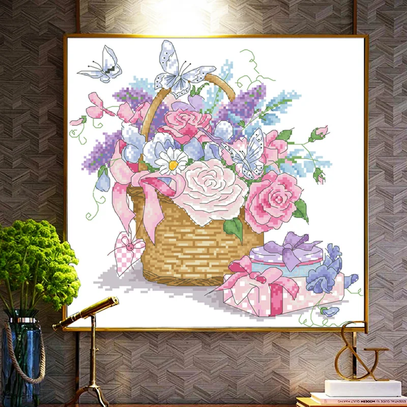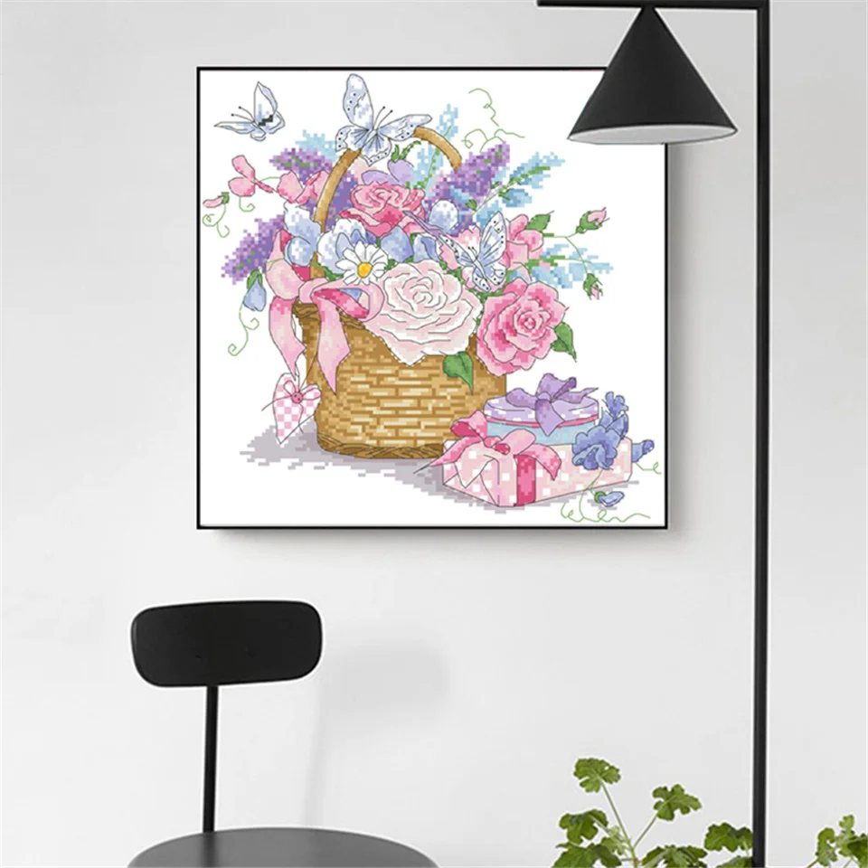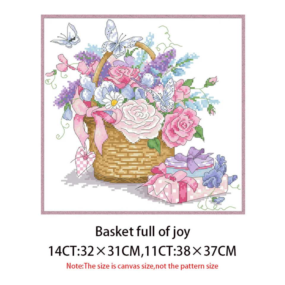 Наборы для вышивки крестиком с изображением корзины Full of Joy, Набор для вышивки на холсте 11CT 14CT, картины для домашнего декора «сделай сам»