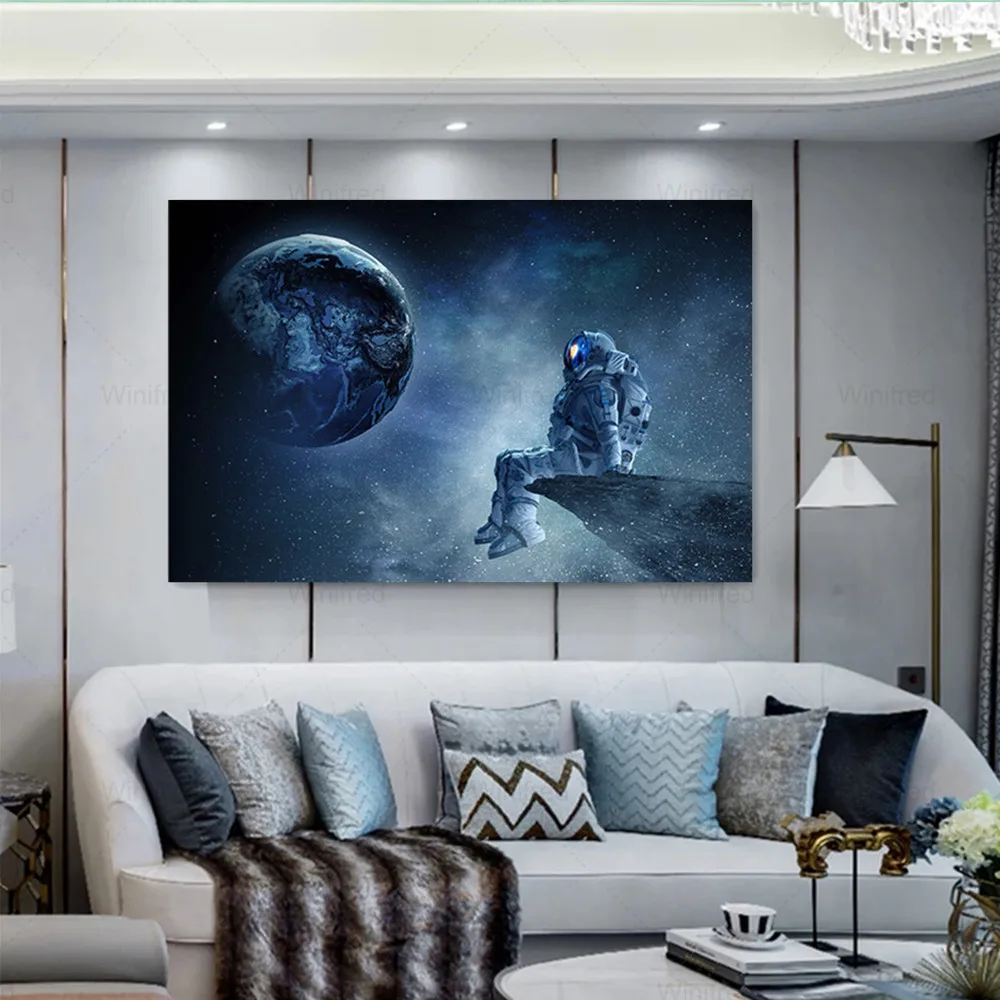 Одинокий астронавт, сидя в пространстве, холст, живопись, Современная фотография стены, картины для гостиной, спальни, Декор