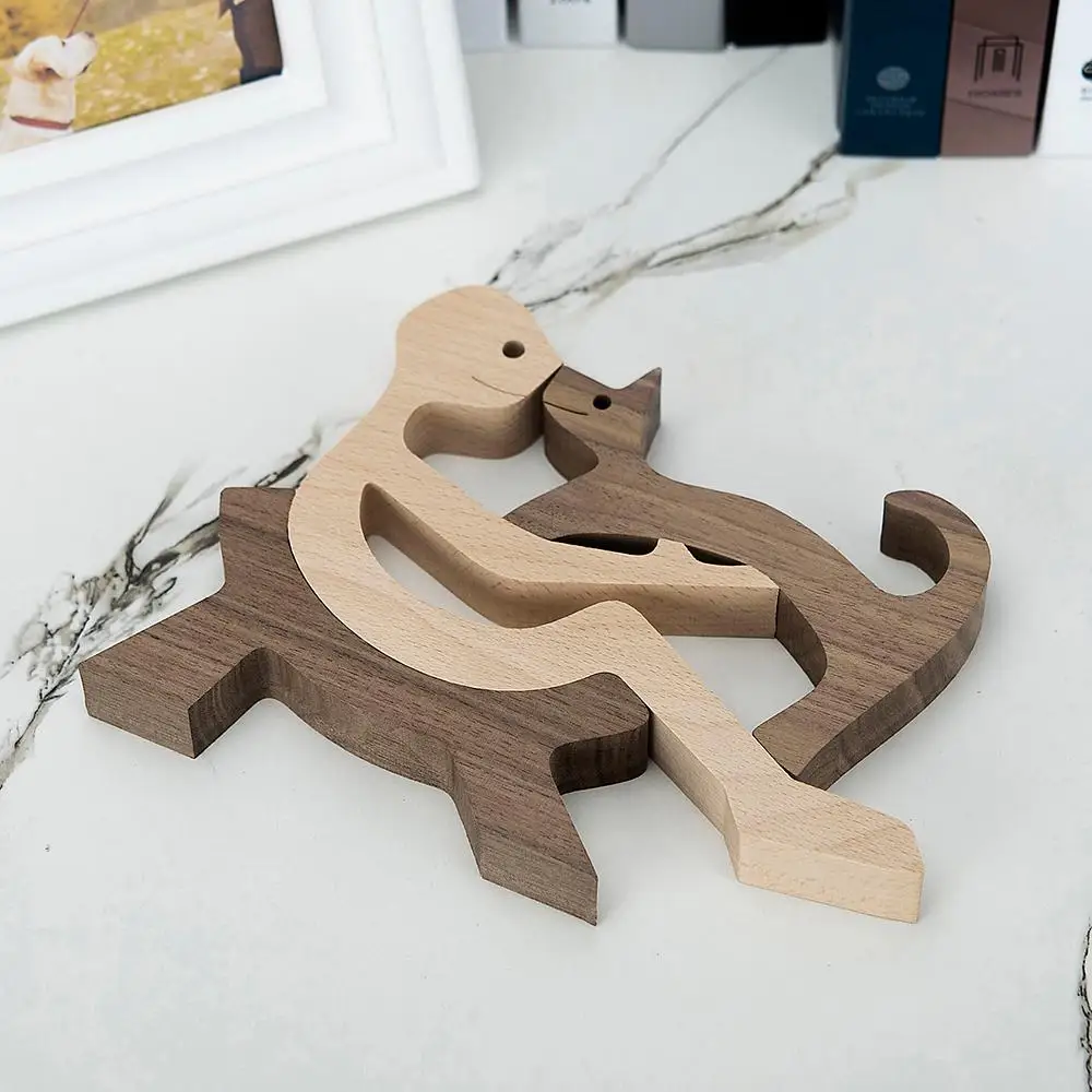 Домашнее украшение, поделки, щенок, семья, деревянная статуя, на заказ, прекрасные украшения для стола, Подарочная коробка, украшение, Пользовательский логотип, Прямая поставка