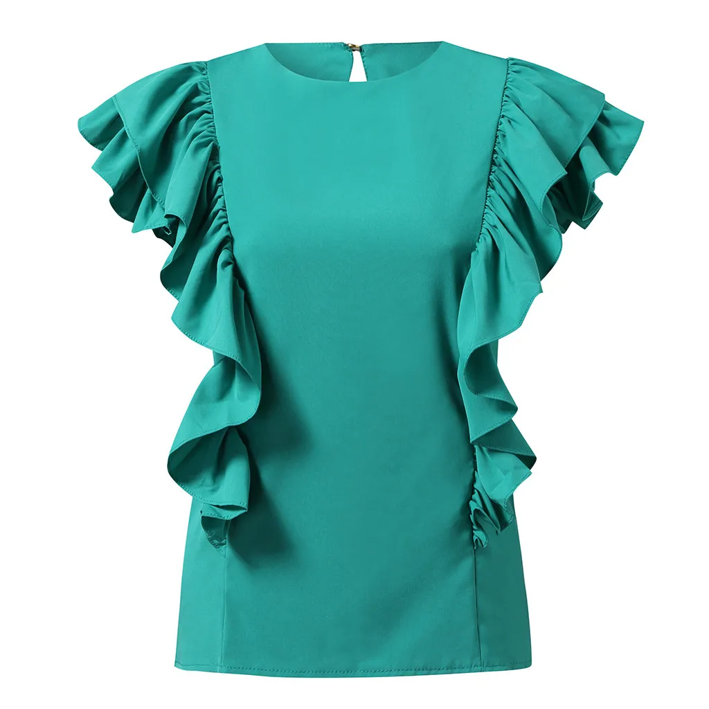 Женская туника с коротким рукавом и круглым вырезом, 4 # блузки с рукавом-бабочкой, женские блузки блузка и рубашки, Новые повседневные пуловеры, блузки