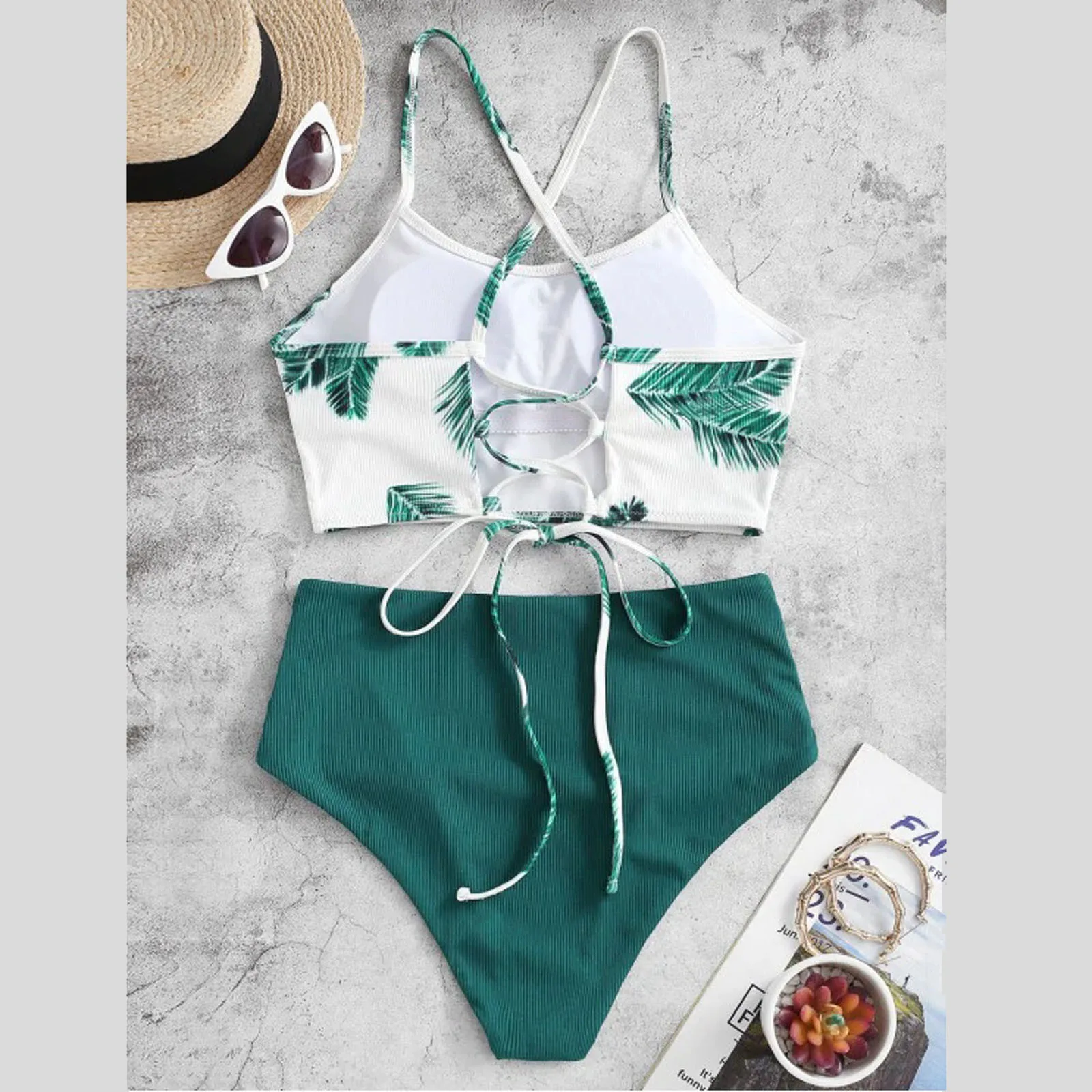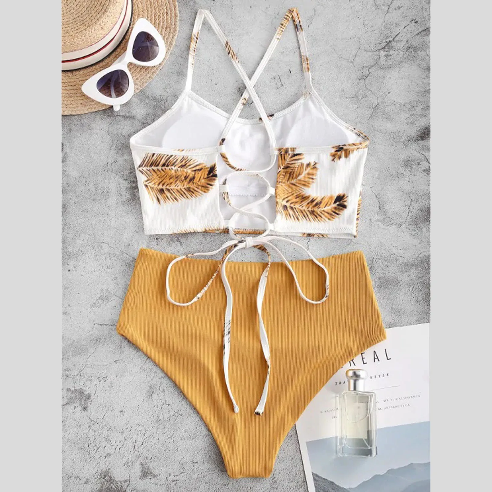 С принтом в виде листьев Винтаж купальник Для женщин купальный кост...