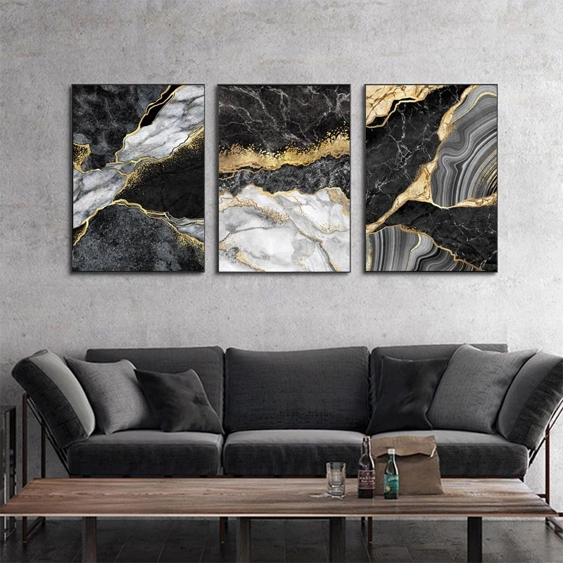 Абстрактная живопись искусство стены черный, белый цвет холст картины Мрамор мозаика с золотыми жилами, Плакаты печать, Картина Настенная для Декор в гостиную