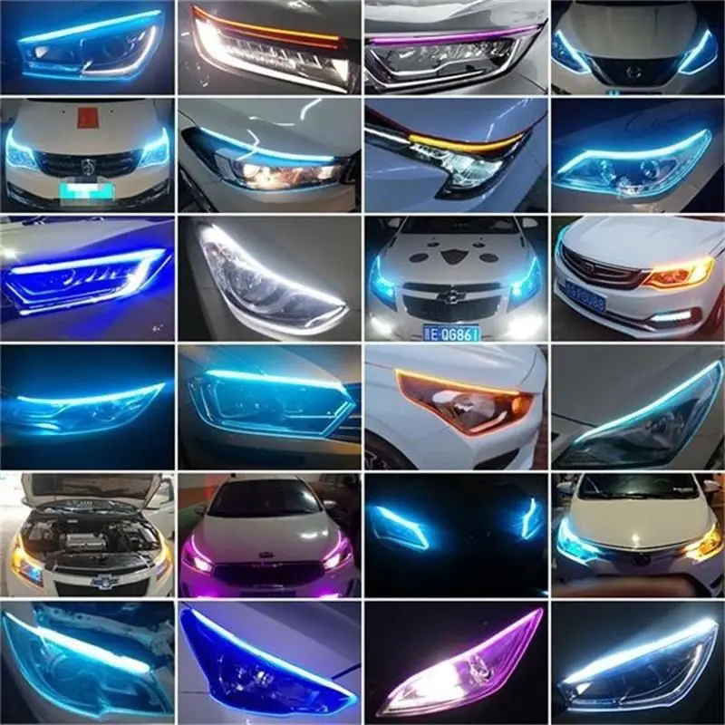 Гибкие автомобильные DRL светодиодная лампа полосы желтого тормозной течет задний фонарь поворота Фонари Водонепроницаемый Универсальный Автомобильный Стайлинг авто аксессуары