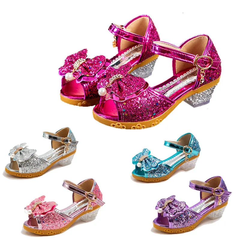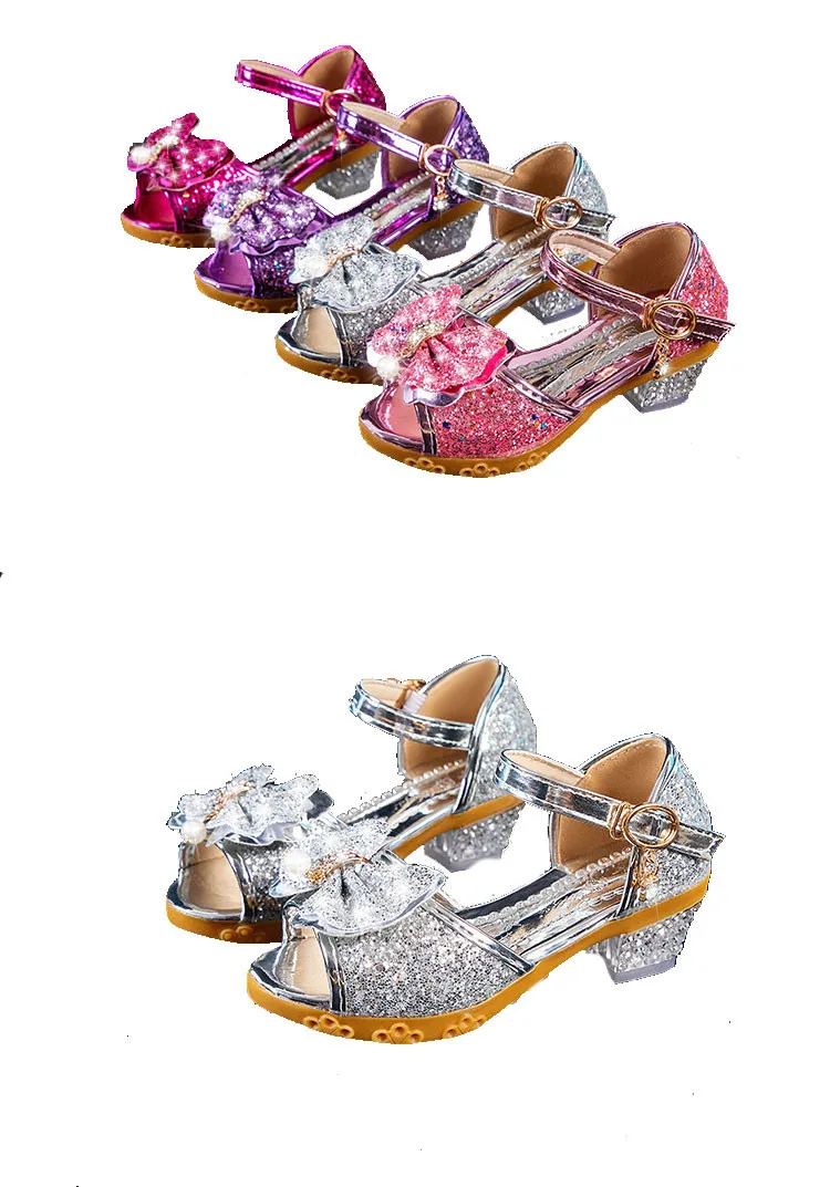 Сандалии для девочек, с блестками, с бабочкой и бантом