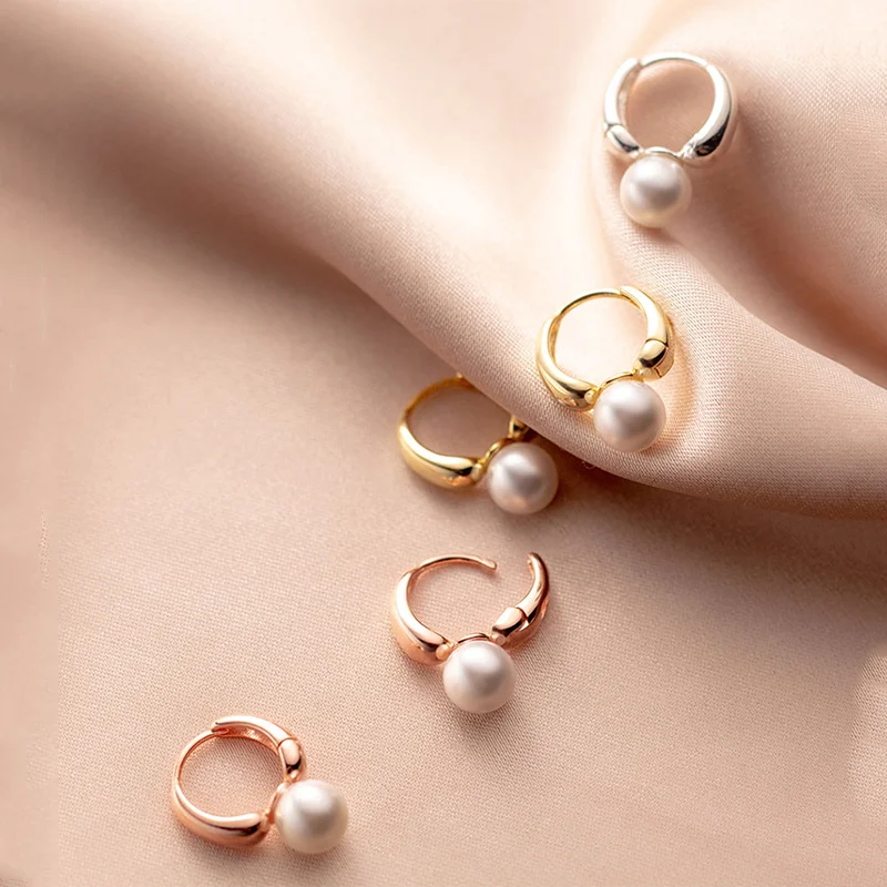 Серьги-кольца женские винтажные с жемчугом, простые элегантные фран...