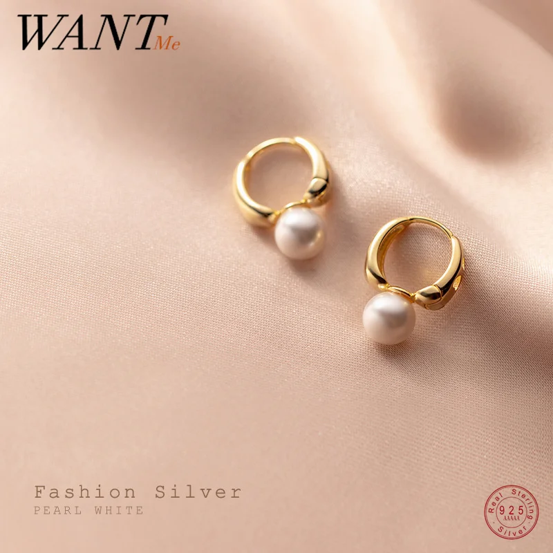 WANTME реальные 925 стерлингового серебра минималистский в Корейском стиле, с пряжкой, круглый жемчуг серьги-гвоздики для женщин Мода уникальный свадебное ювелирное изделие, подарок
