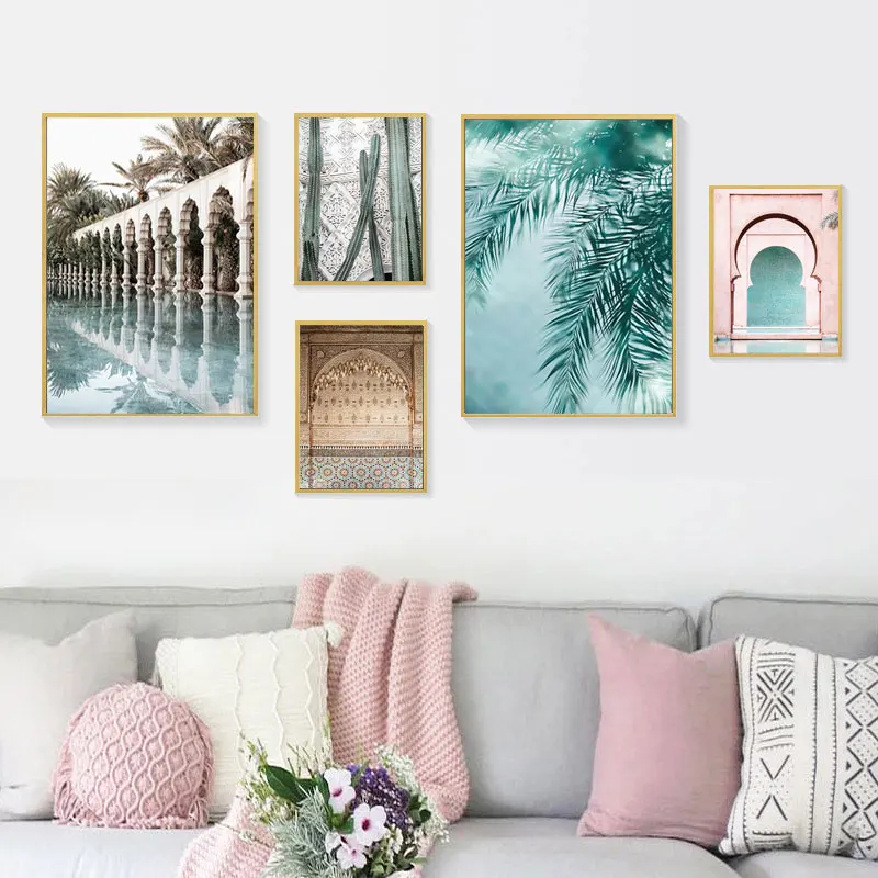 Настенные художественные плакаты с исламским зданием, Скандинавская архитектура, картины на холсте, пейзаж, растения, картины для путешествий, Рамадан, домашний декор