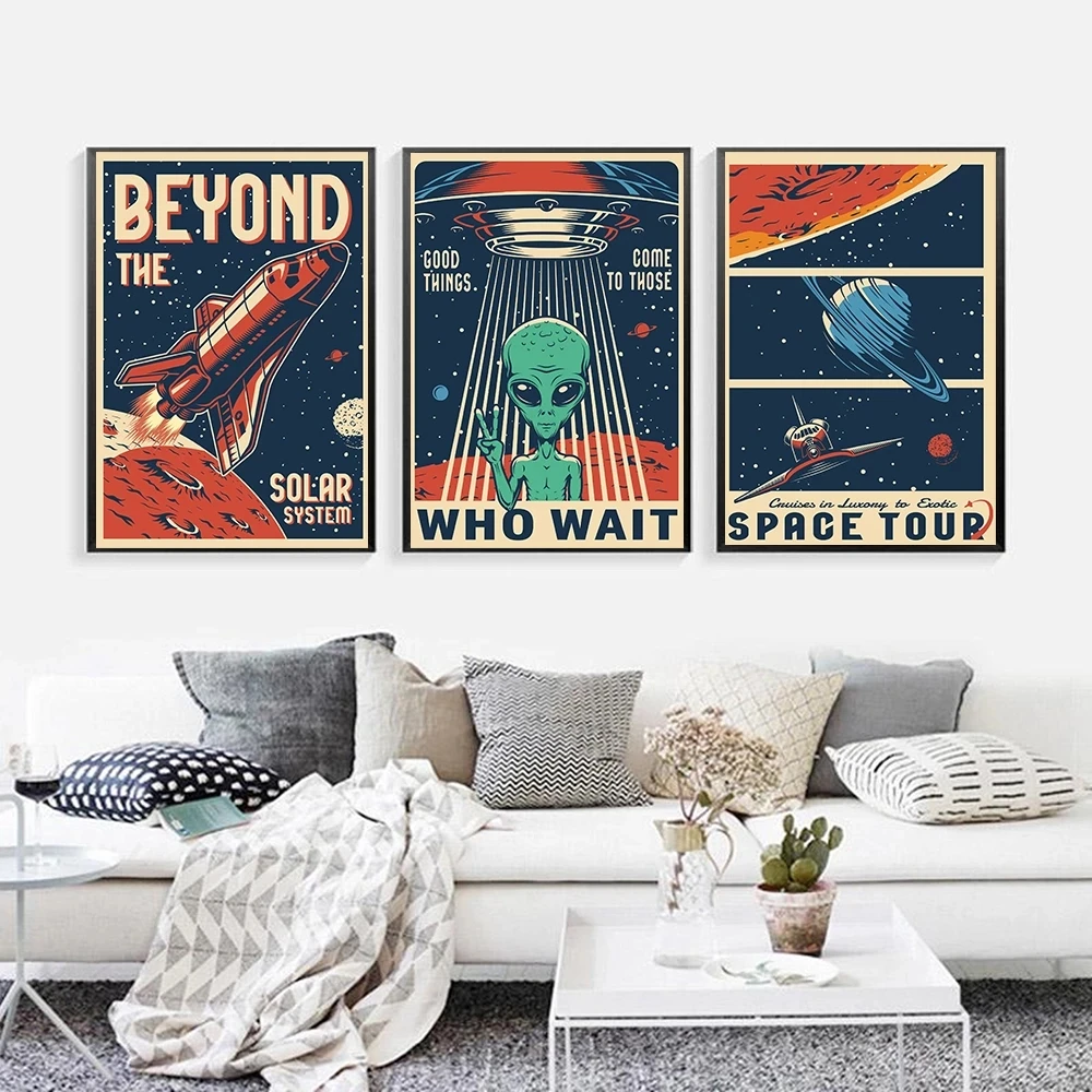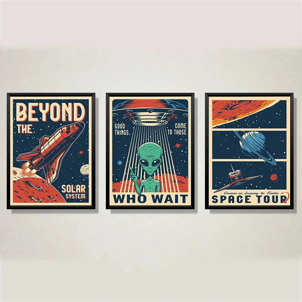 Винтажная картина Hd с рисунком, космические Ретро плакаты с инопланетянинами, настенный плакат, картина для гостиной, украшение для дома