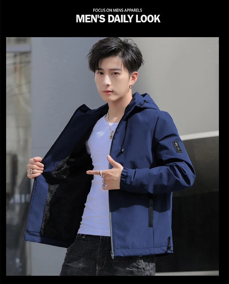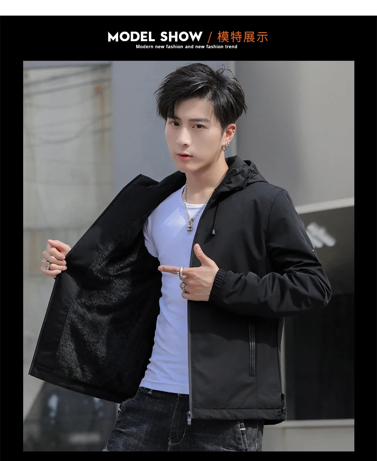 Куртка мужская с капюшоном, модная повседневная однотонная верхняя ...