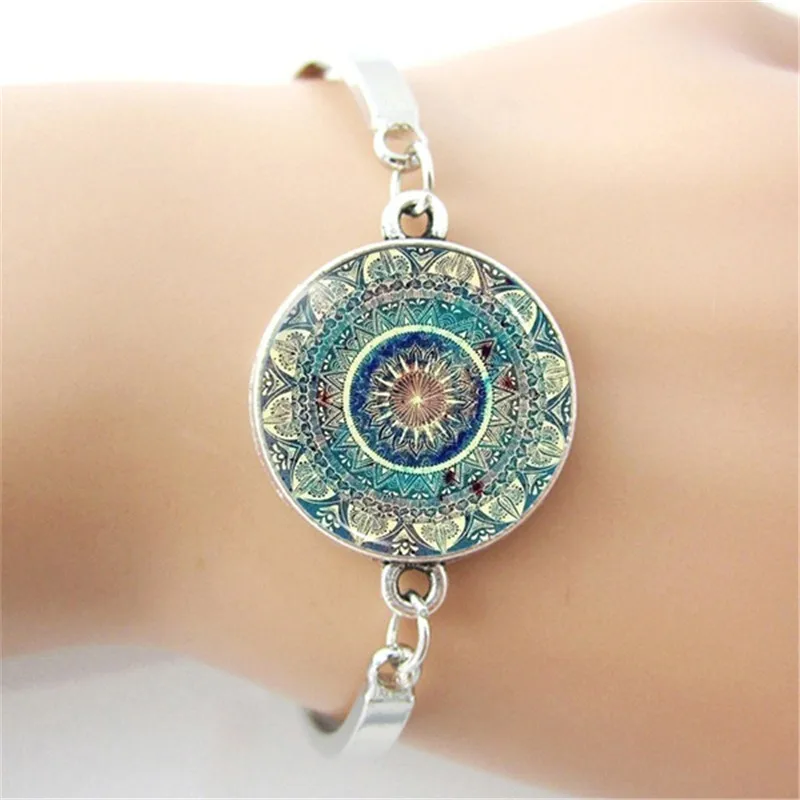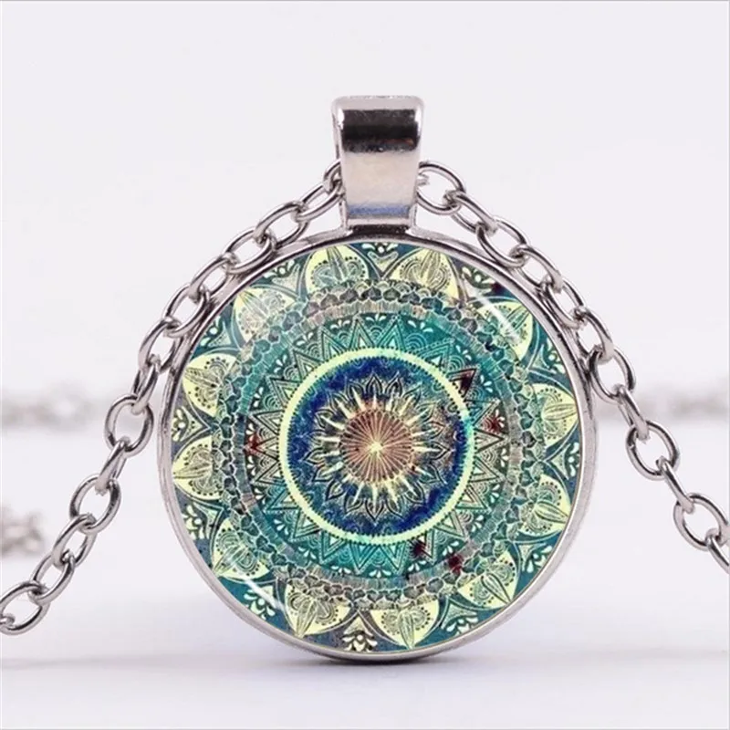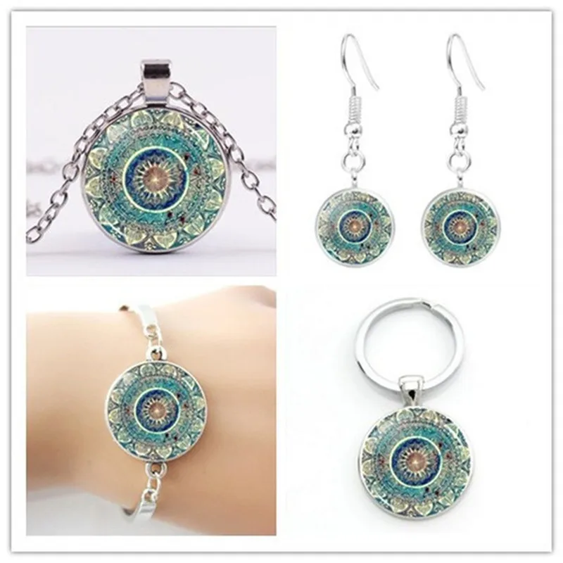 Буддийские ювелирные изделия чакра Om Индийская Йога Мандала стеклянное ожерелье серьги-гвоздики браслет брелок комплект всего 5 шт. ювелирный набор
