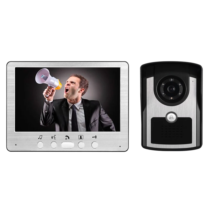 Видеодомофон, 7 дюймов, с дверным звонком, водонепроницаемая