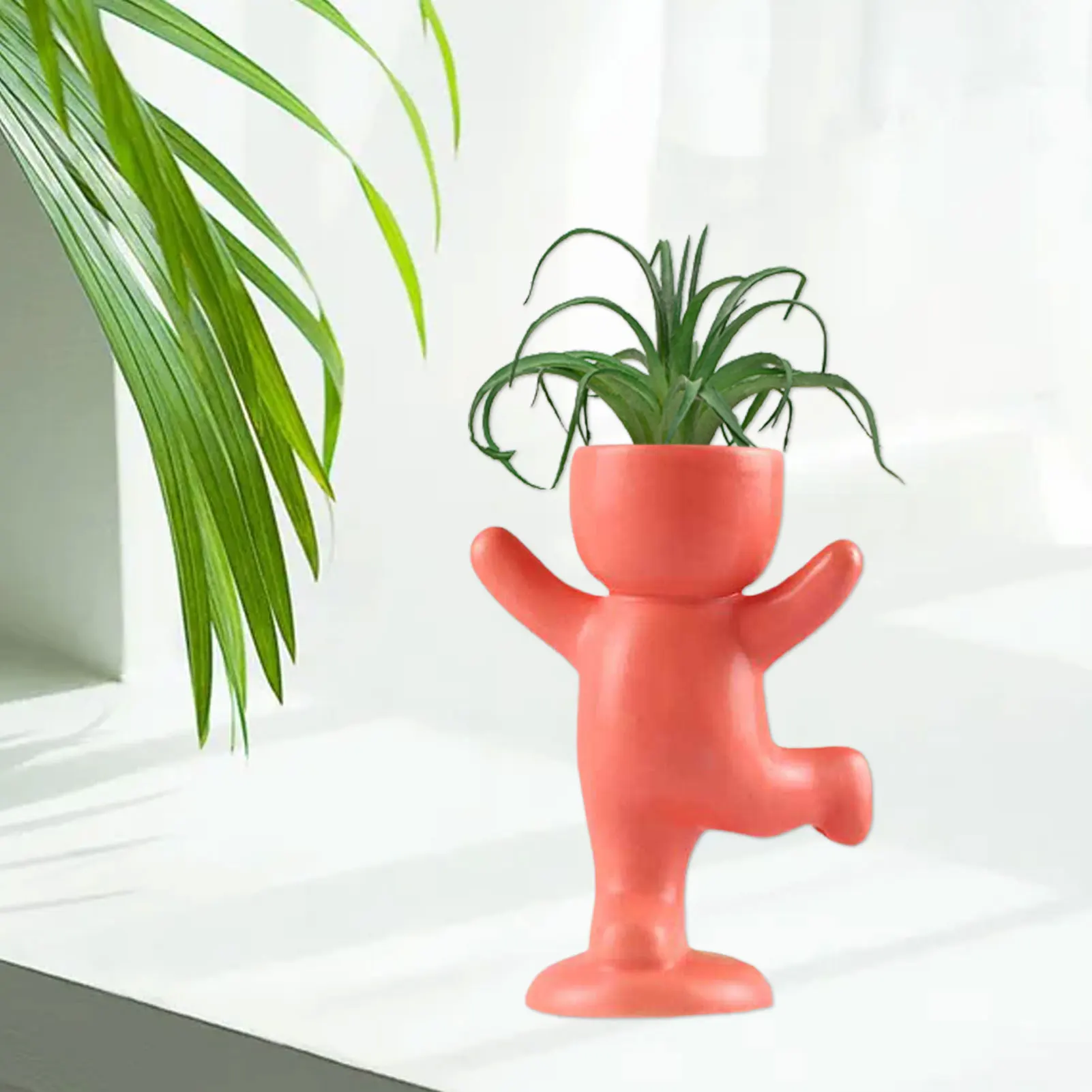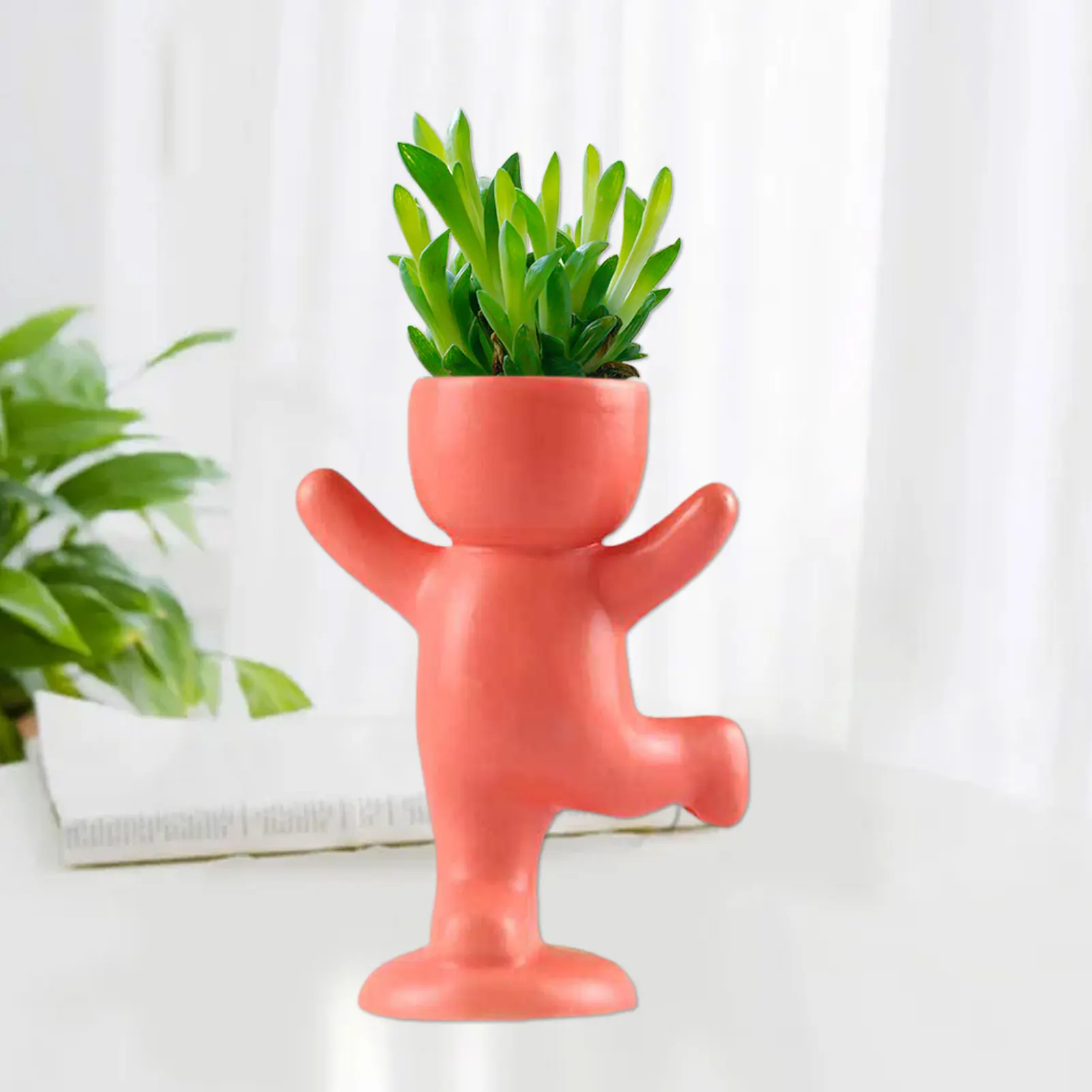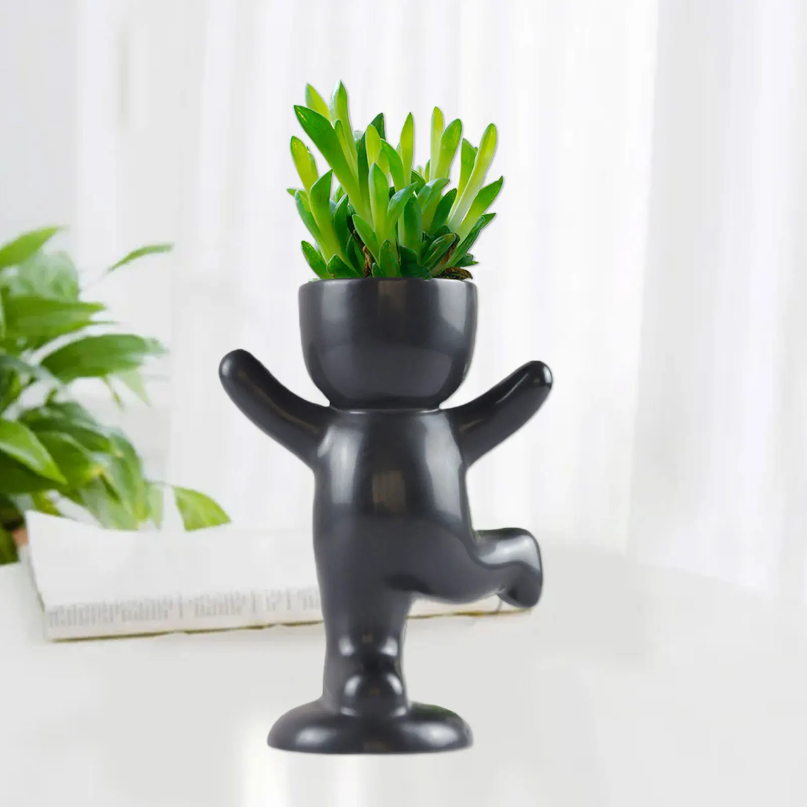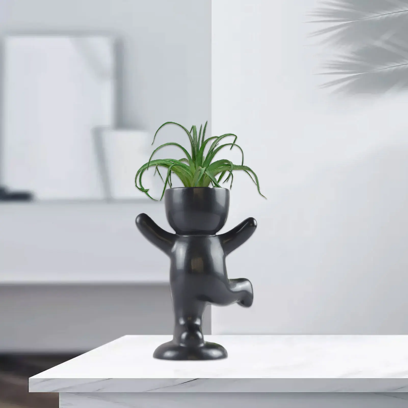 Креативная керамическая ваза, настольный контейнер для растений в форме человеческого тела, декоративный цветочный горшок с боковым кольцом, ручка для домашнего интерьера