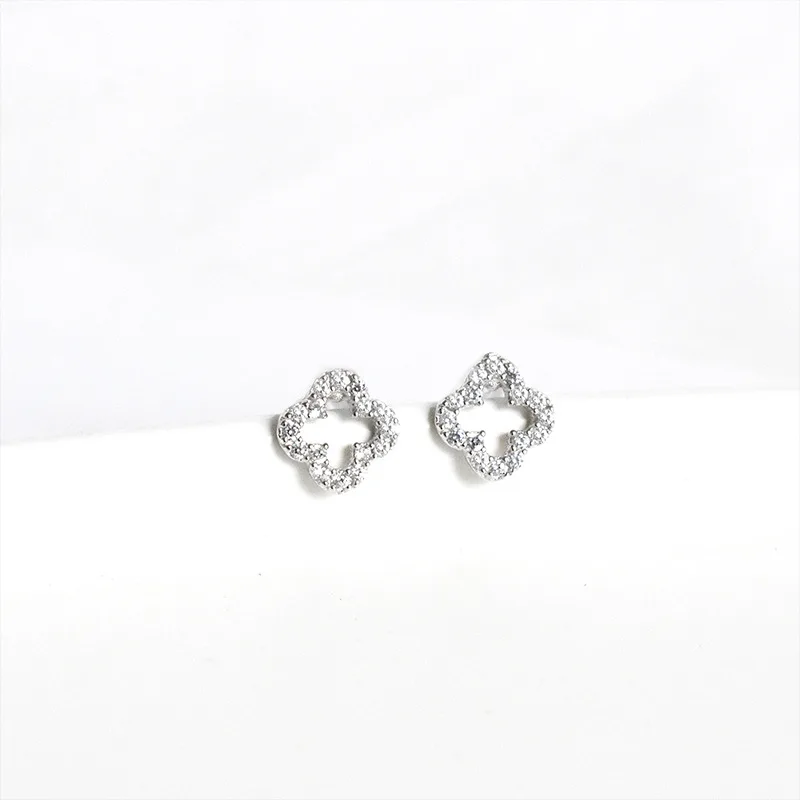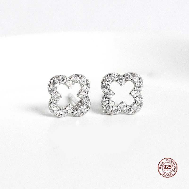 LKO Лидер продаж настоящее серебро S925 полый клевер серьги-гвоздики блестящие серьги с кристаллами циркона для женщин ювелирные изделия для девочек Бесплатная доставка