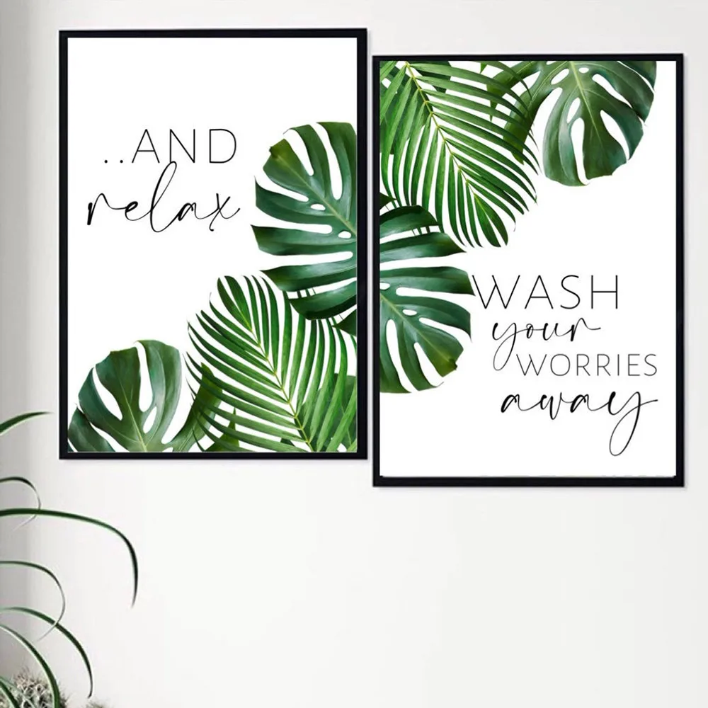 Декор для комнаты, плакаты, холст с зелеными листьями, картина с цв...