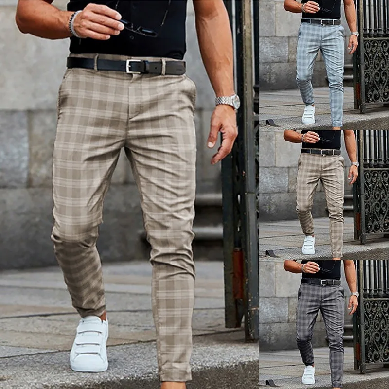 Брюки-Карандаш мужские в клетку, Модные Винтажные штаны со средней талией, на пуговицах, повседневные длинные брюки, уличная одежда, весна-лето 2022