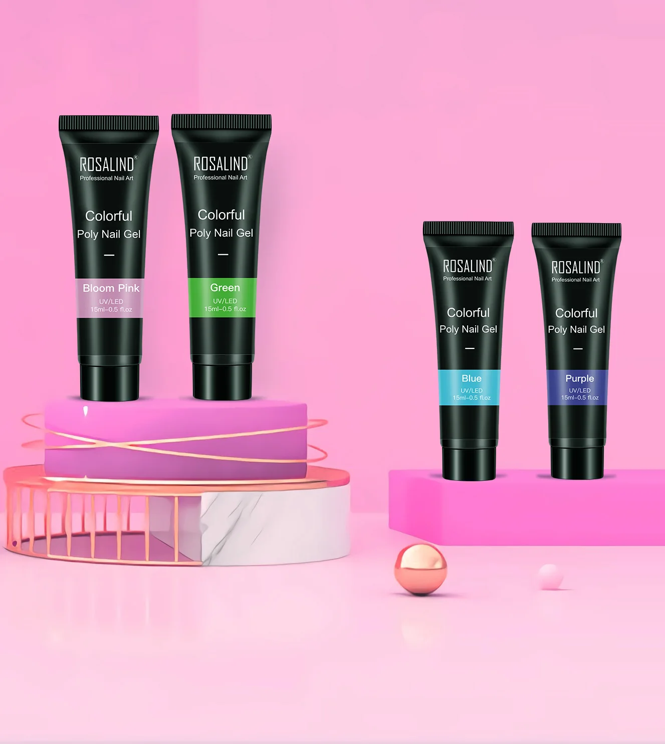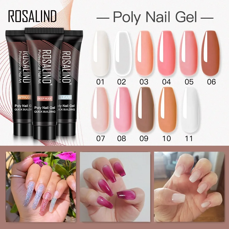 Полигель ROSALIND для наращивания ногтей, 15 мл, гибридный лак, быстрый акриловый УФ-гель для маникюра, однотонный Полупостоянный лак