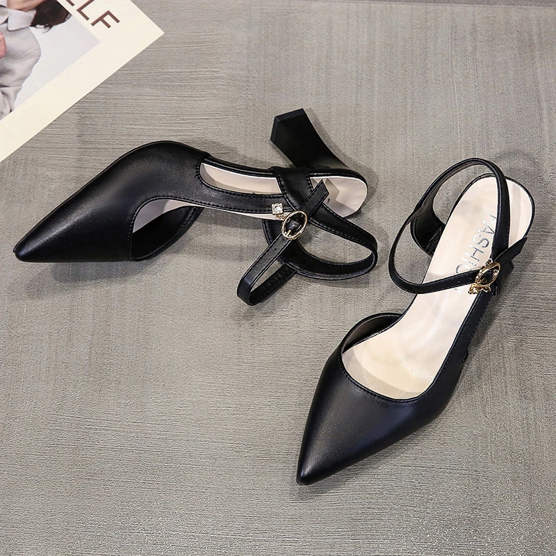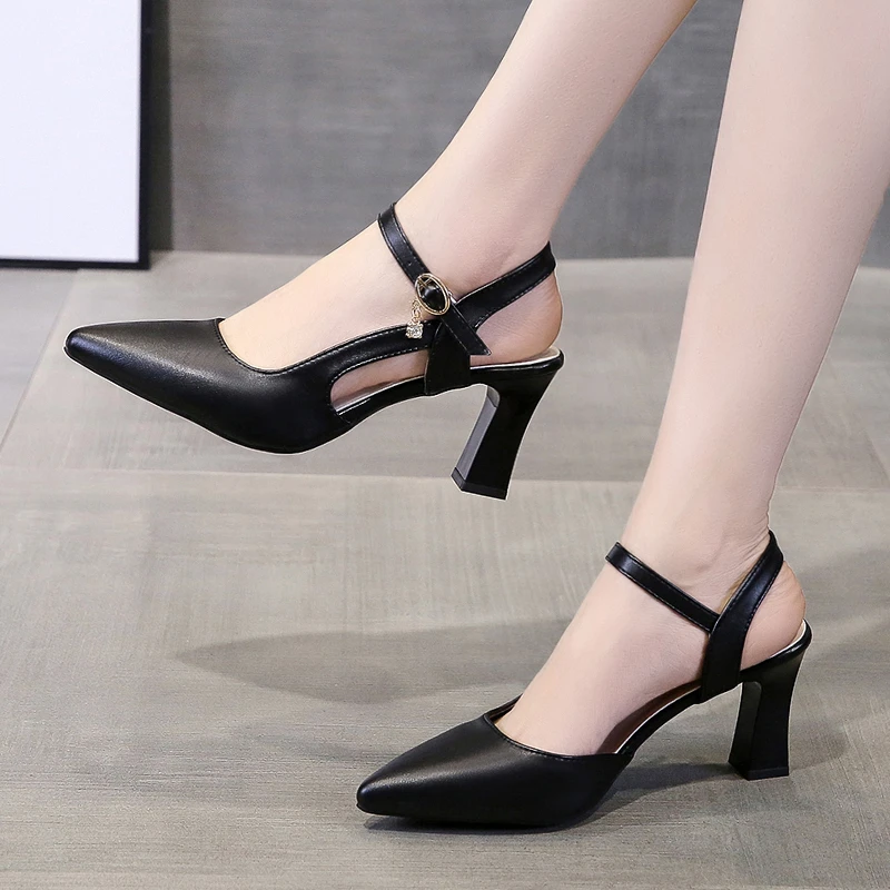 Женские босоножки на высоком каблуке, черные туфли-лодочки с острым носком и ремешком на щиколотке, модель 9209N на лето, 2021