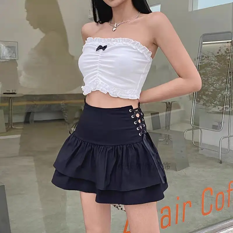 Сексуальные черные мини-юбки Y2K темного академического стиля с боковой шнуровкой, фея, гранж, готическая одежда, Egirl, Харадзюку, обтягивающие короткие юбки