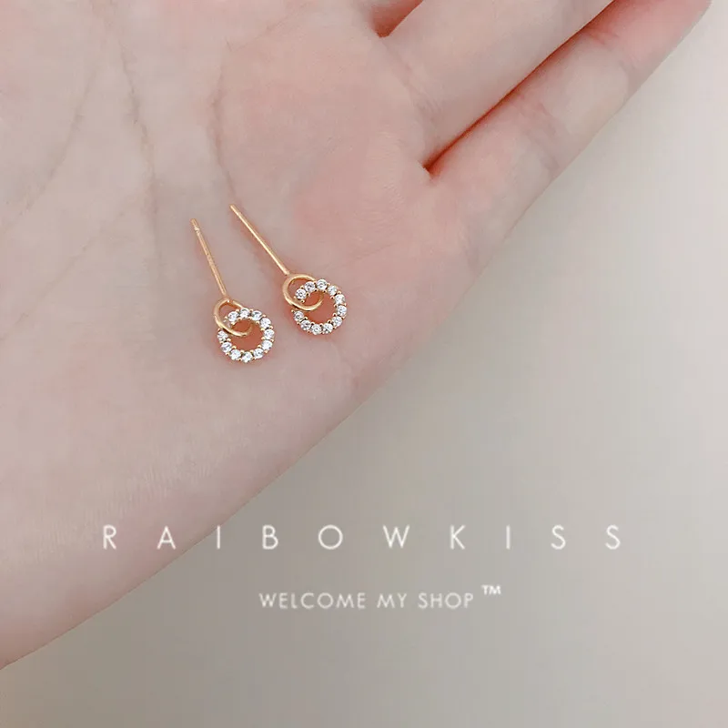 Серьги в Корейском стиле маленькие свежие и простые инкрустированны...
