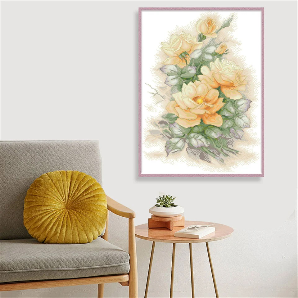 Нежная Желтая роза Счетный крест вышивка узоры Наборы для вышивания набивная ткань 11CT 14CT наборы для рукоделия домашний декор картины