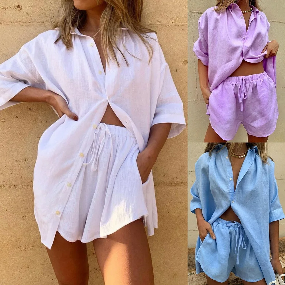 Женский спортивный костюм, комплект из двух предметов, летняя рубаш...