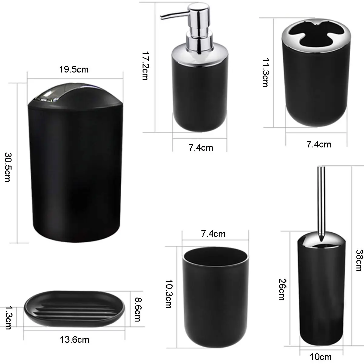 Набор аксессуаров для ванной комнаты, 6 шт.компл., пластиковый держатель для зубных щеток чашек, дозатор мыла, держатель для туалетной щетки, набор мусорных баков