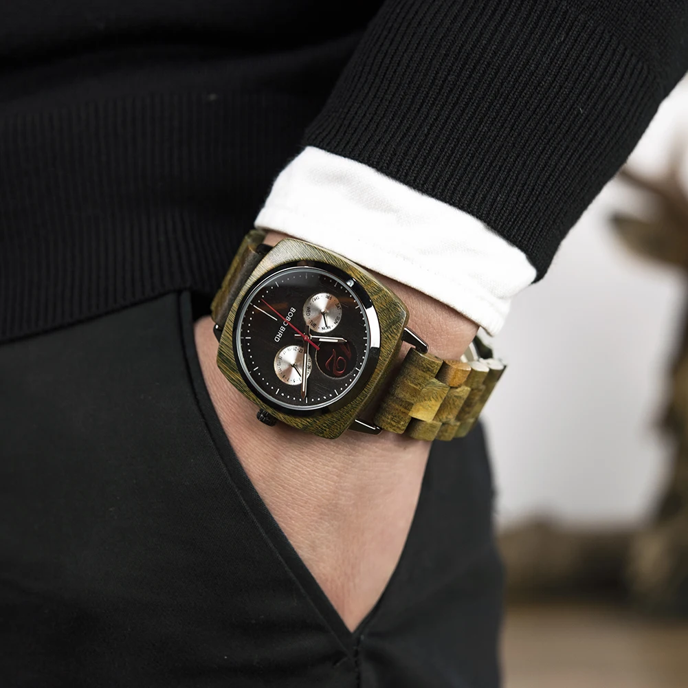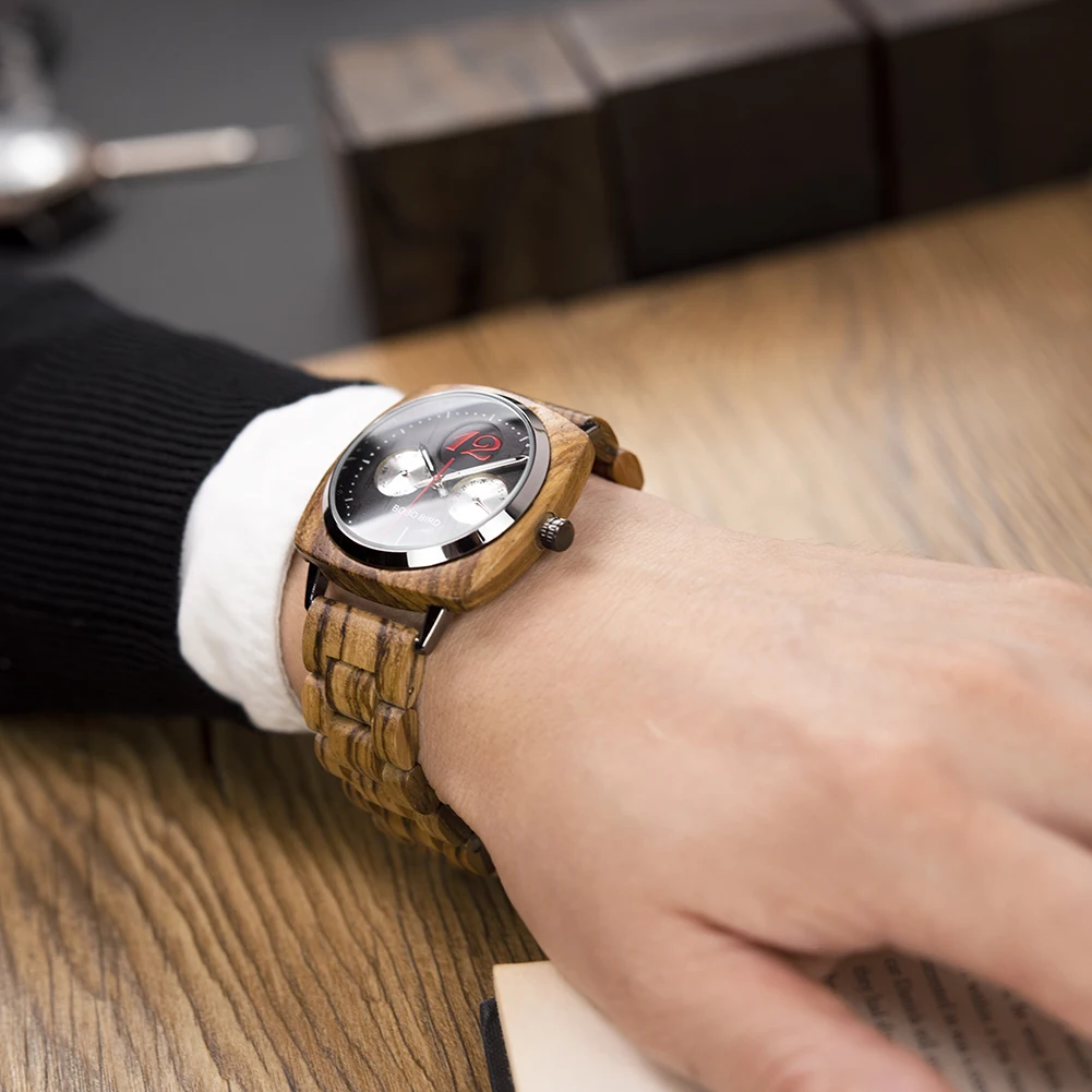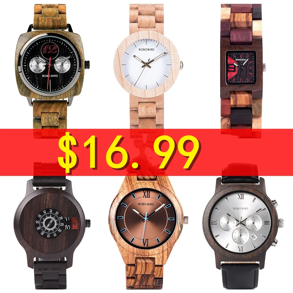 Часы наручные BOBO BIRD Мужскиеженские деревянные, модные светящиеся, с браслетом из сплава, отличная подарочная коробка