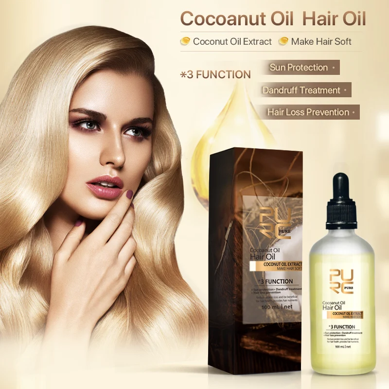 Средство для ухода за волосами PURC, 100 мл, кокосовое масло, предотвращение выпадения волос, сглаживание, сглаживание, лечение перхоти и кожи головы