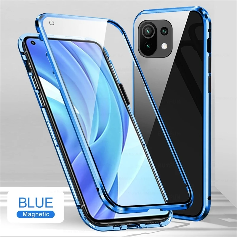 Чехол mi 11 lite с металлическим бампером и магнитной застежкой на 360 ° для xiaomi mi11 light ultra pro 11 lite, двусторонний стеклянный чехол