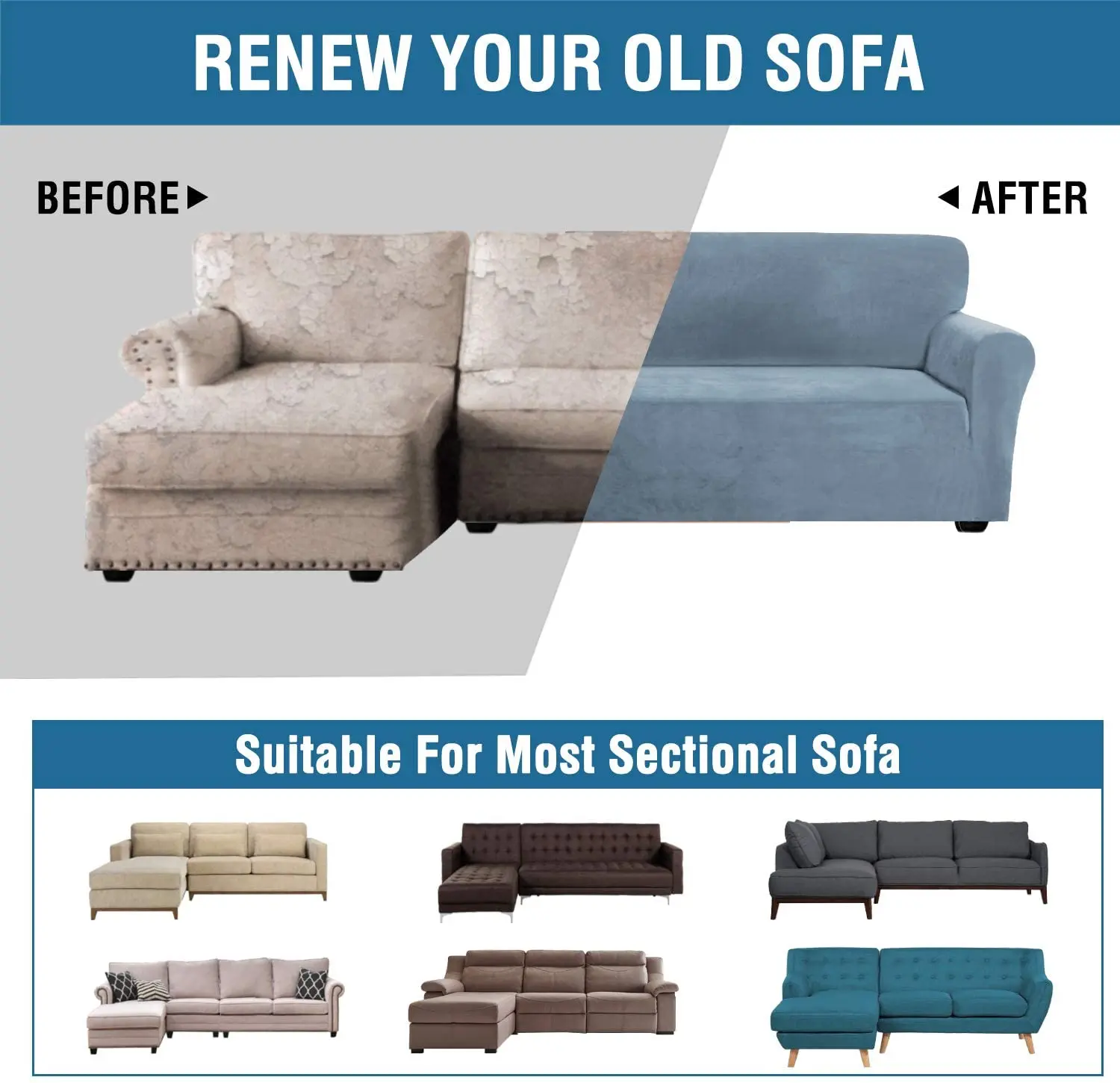 Чехол для дивана бархатный L-образный эластичный, для гостиной