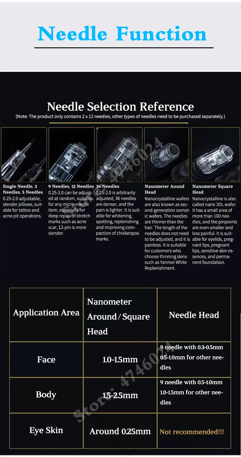 Параметры машины:Батарея: литиевая батарея (7,4 В, 400 мАч)Интерфейс: спиральМатериал корпуса: алюминийВходное напряжение: 100-240 ВВыходное напряжение: 5 В, 1000 мААдаптер: доступны США/ЕСВибрационная частота: 6500-10000r/mУровни скорости: 1-5 уровнейДлина иглы: от 0,25 мм до 2,0 мм регулируемыйИгольчатый картридж: 9,12,24,36,42, Круглый нано, 2D,3D,5DМатериал иглы: нержавеющая сталь и ТитанЦвет светодиода: красный, синий, зеленый, желтый, фиолетовый, прозрачный синий, лазерный белыйКак использовать BB крем-машину?Различная длина иглы принимает другой метод использованияРазмер 0-0,50 мм метод использования: в коже на окружности лечения.Размер 1,00-2,50 мм способ использования: нравится печать ролик использование пути и розовое золото заполнены (штамп на коже)