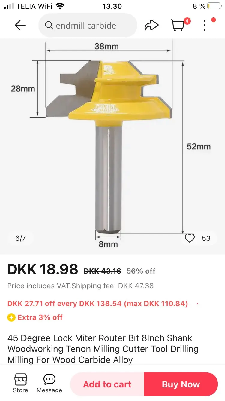 45 градусов Блокировка торцовочный фреза 8 дюймов хвостовик фреза по дереву для соединения шип-паз фрезерный инструмент сверлильный фрезерный станок для древесины карбида сплава