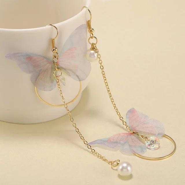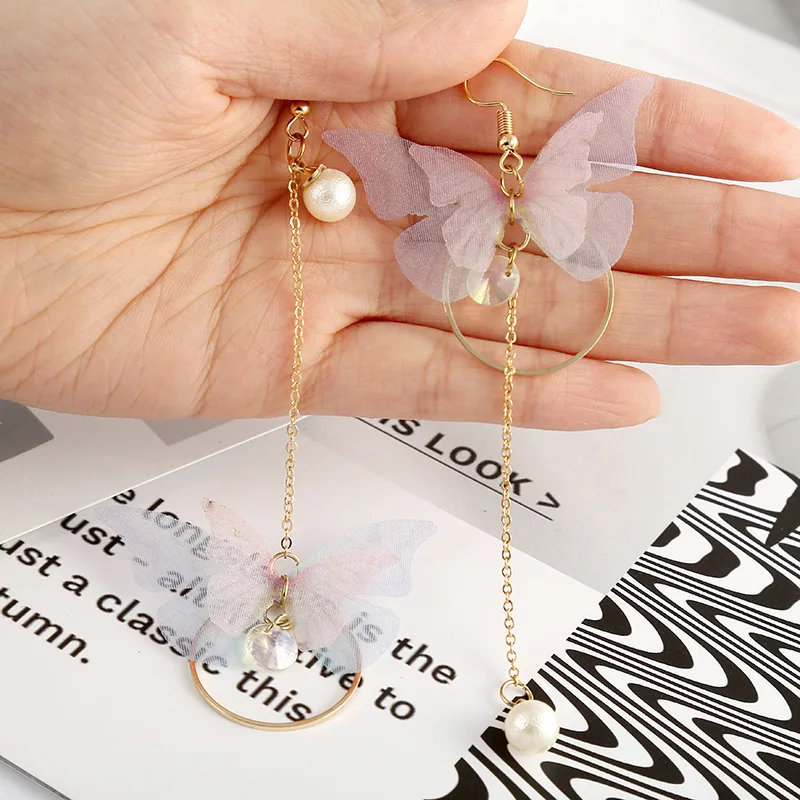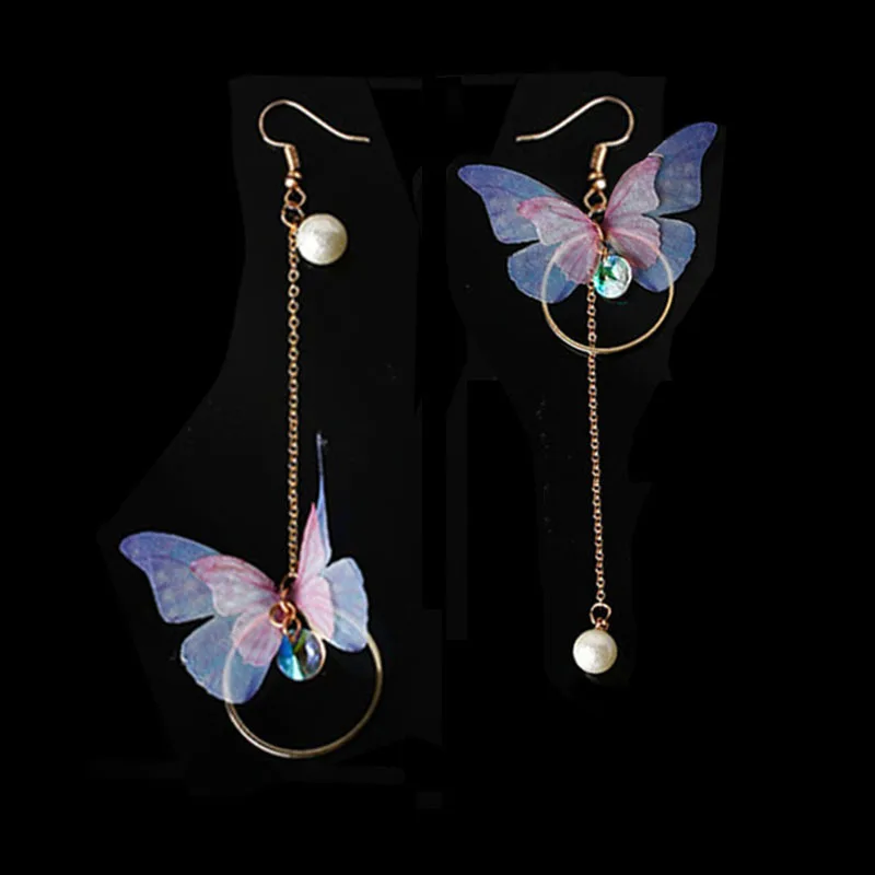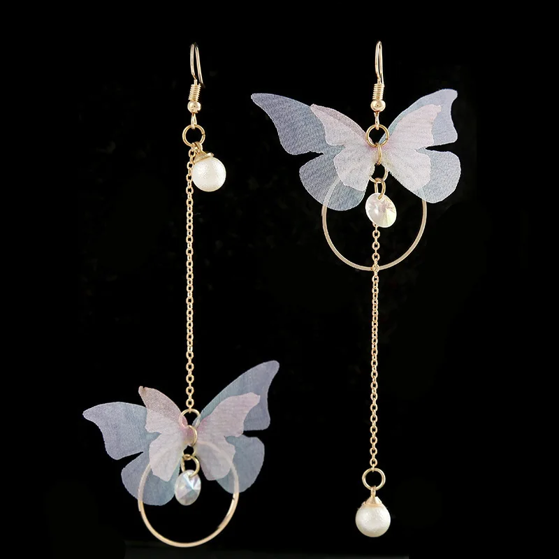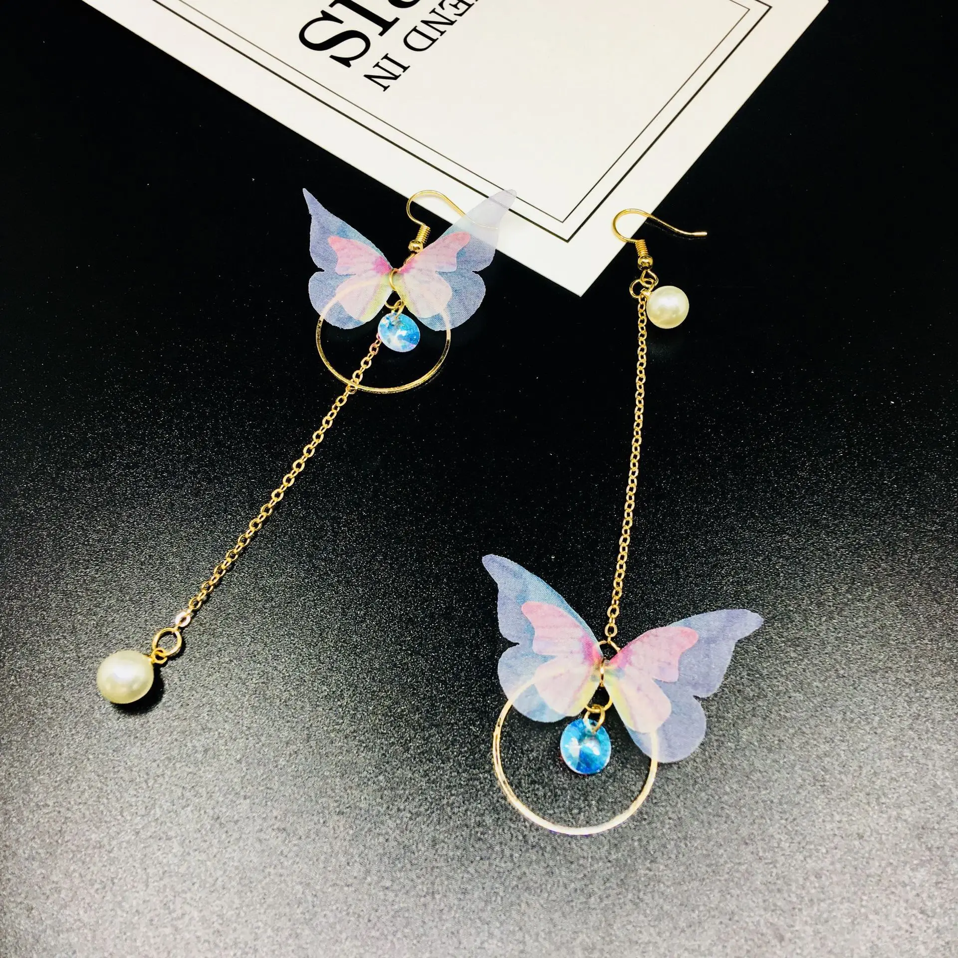 Корейские Ретро Асимметричные изысканные серьги с имитацией жемчуга и бабочки из сплава с длинными крыльями для женщин лучший подарок серьги тренд 2021