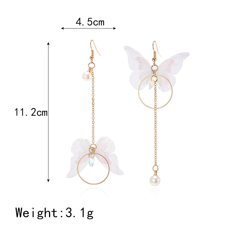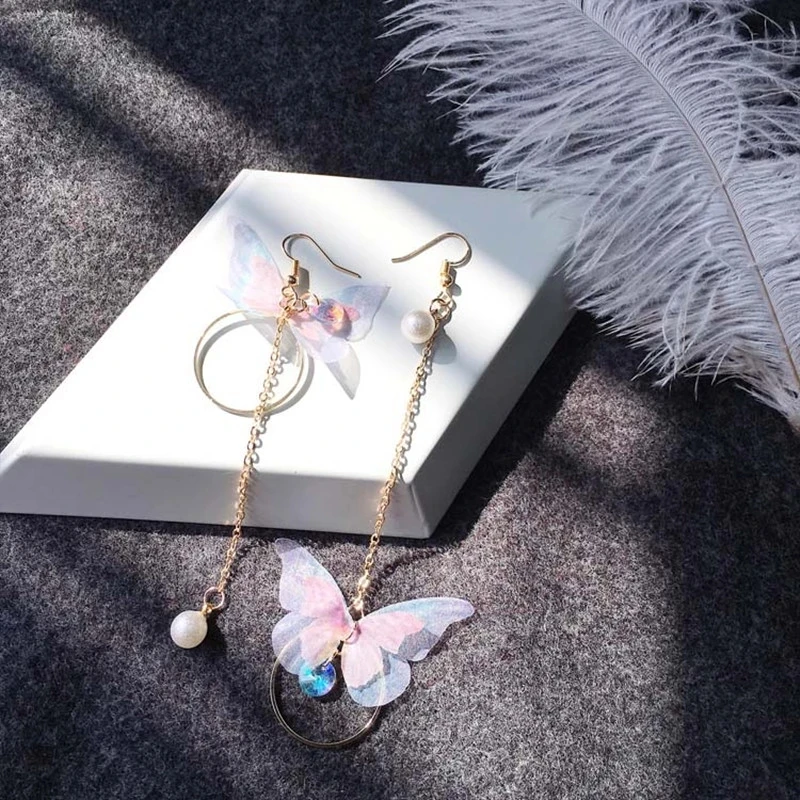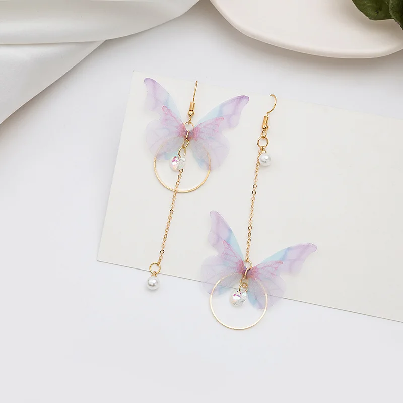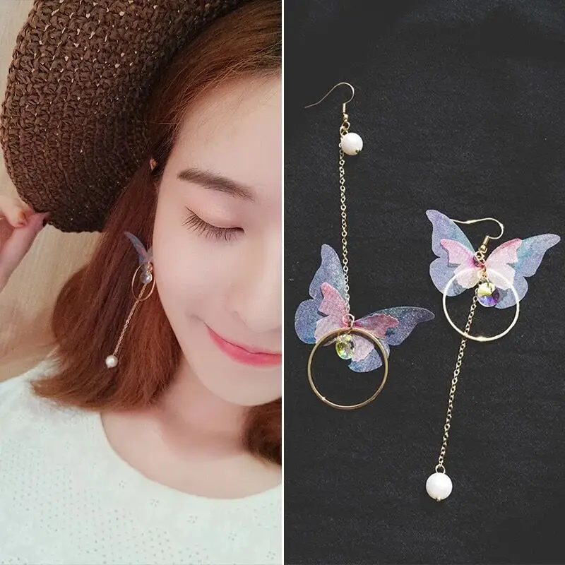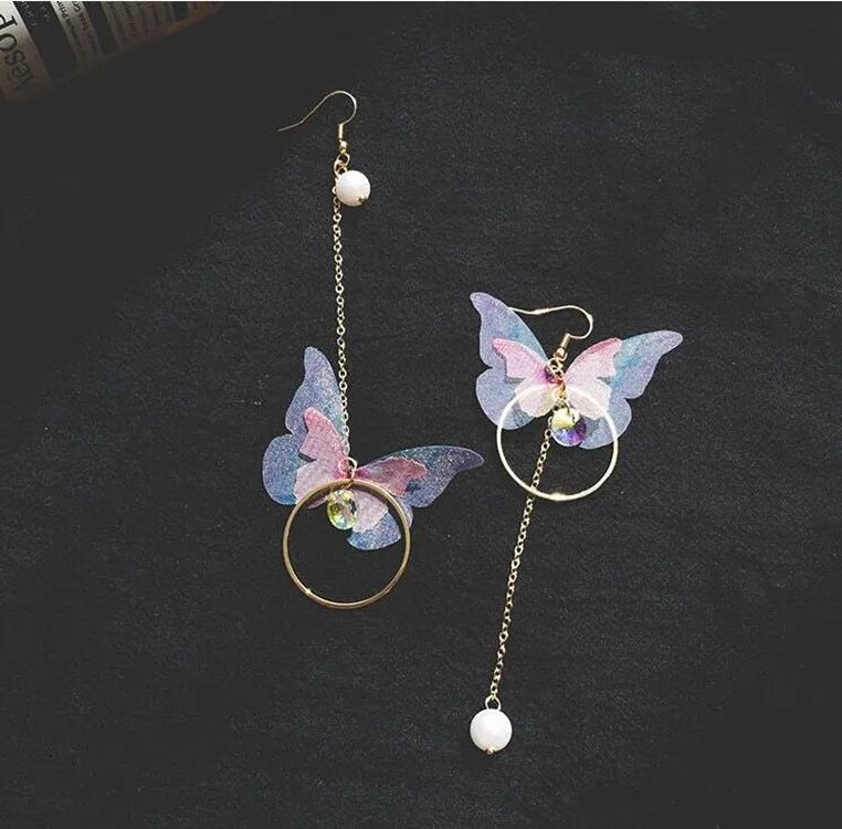 Корейские Ретро Асимметричные изысканные серьги с имитацией жемчуга и бабочки из сплава с длинными крыльями для женщин лучший подарок серьги тренд 2021