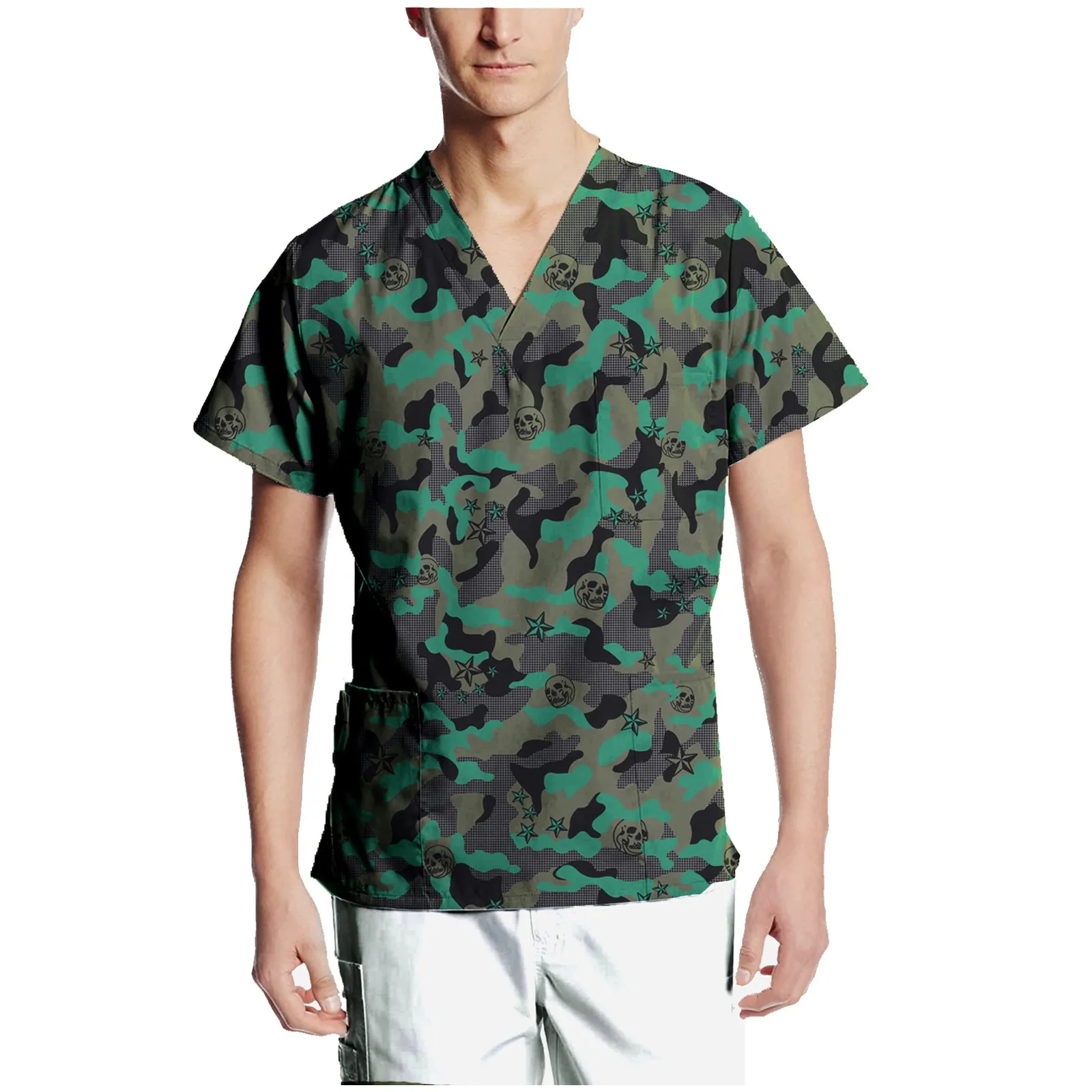Для мужчин с V-образным вырезом и короткими рукавами, топы Рабочая Униформа блузка сложного кроя с принтом, с изображением героев мультфильмов Униформа скрабы костюм размера плюс Медицинская Одежда