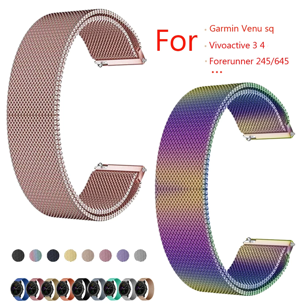 Магнитный ремешок с пряжкой для Garmin Vivoactive 3 4 Venu SQ Forerunner 245/645 Vivomove HR band 20 мм 22 мм браслет из нержавеющей стали
