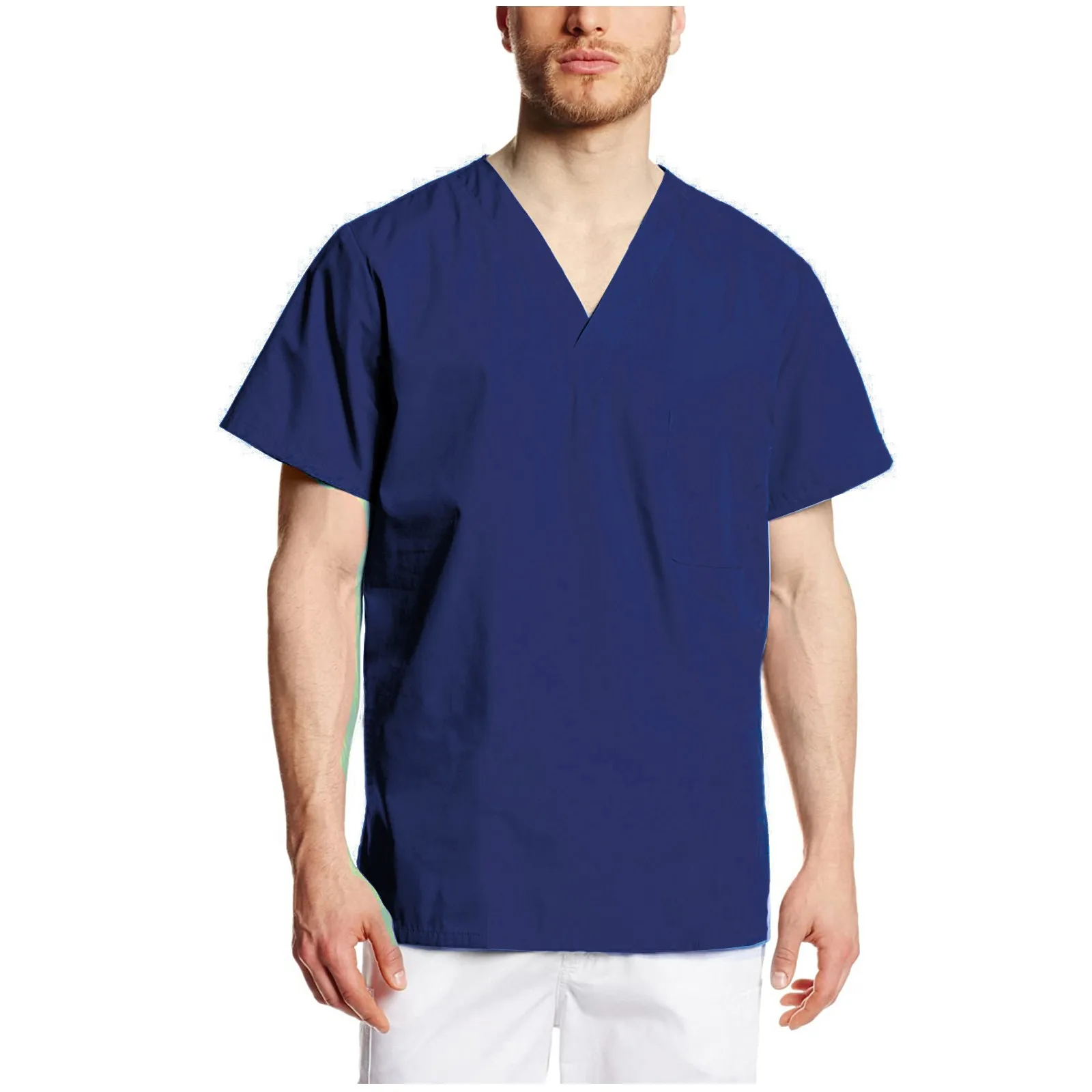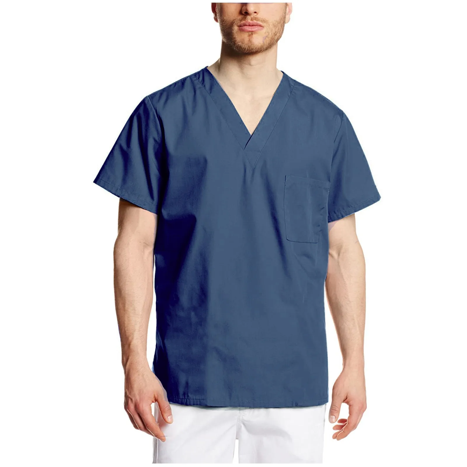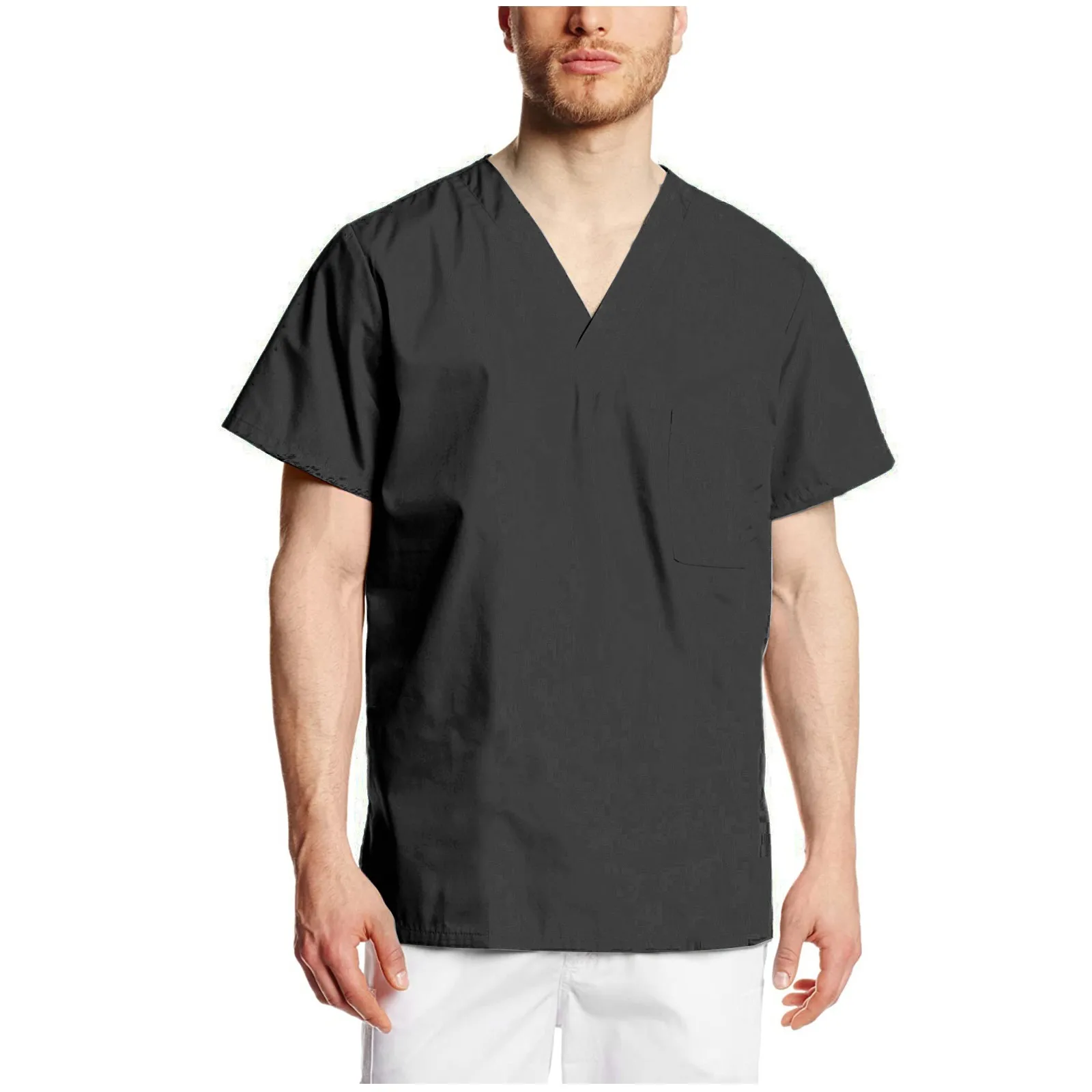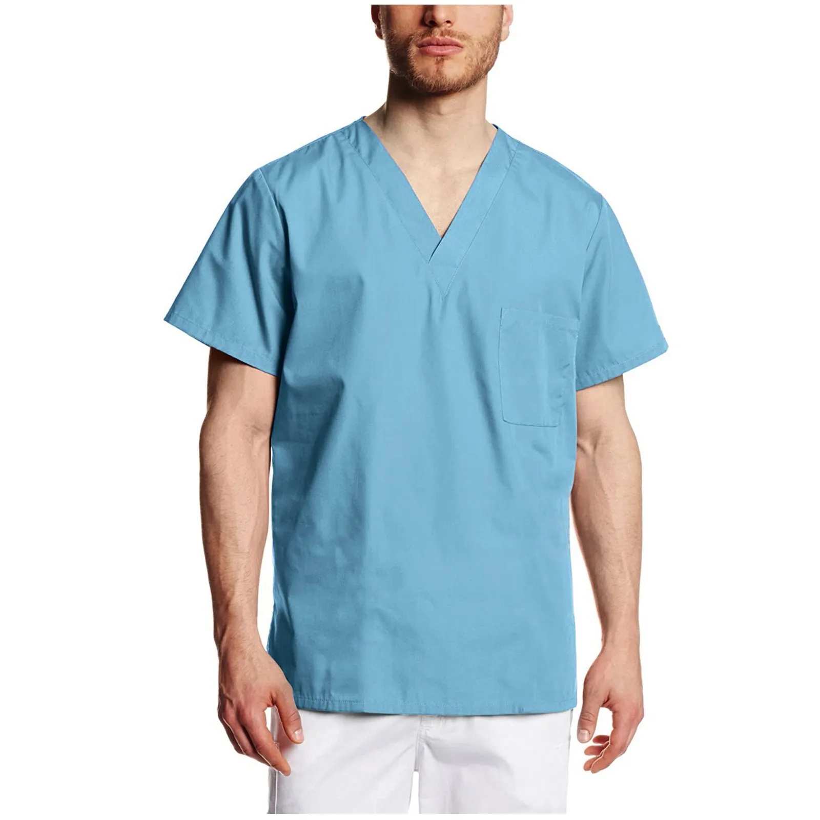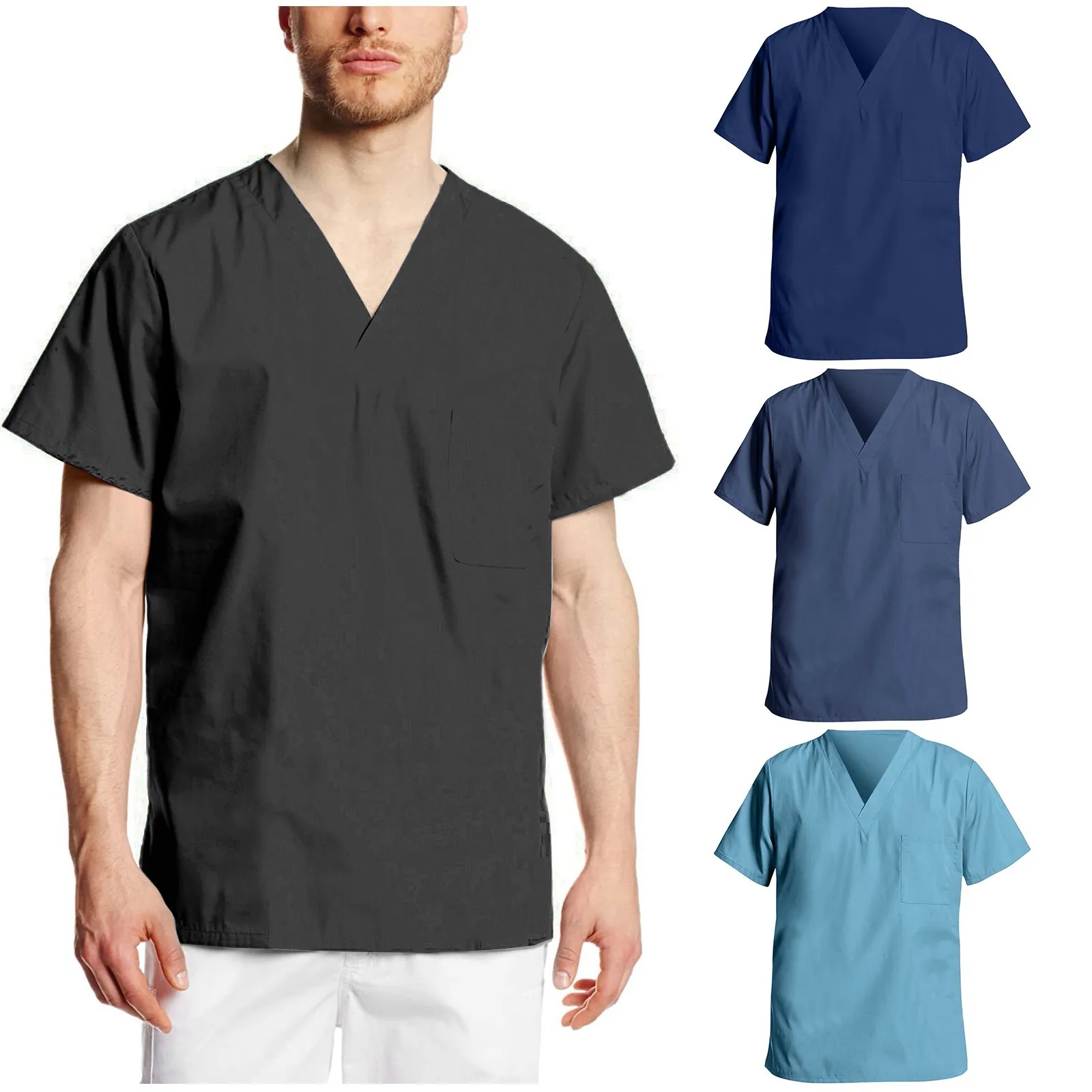 Мужская униформа медсестры сплошной Цвет с V-образным вырезом и короткими рукавами, 2021 Повседневная для кормления Рабочая Униформа, костюм Одежда для персонала больниц полный комплект одежды