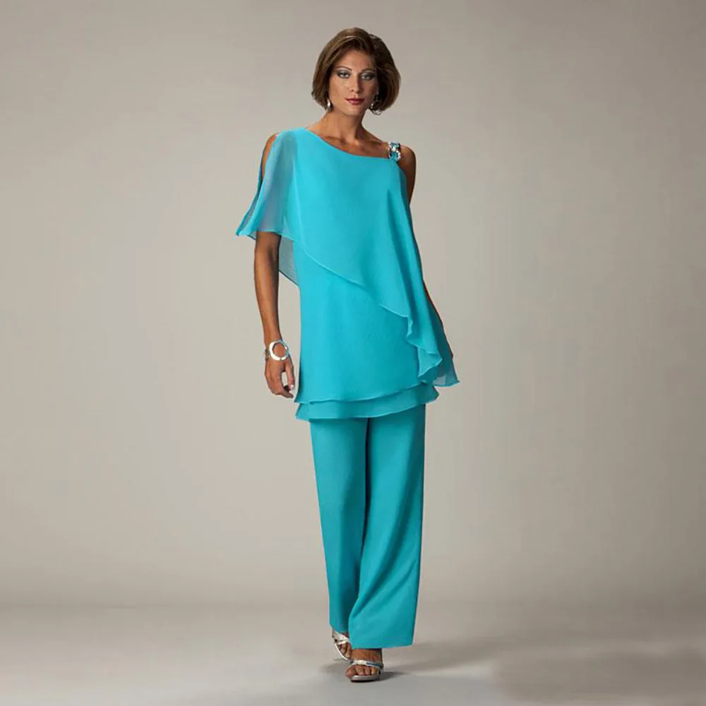 Изготовленный На Заказ Двойка Бесплатная доставка с длинным рукавом новый шифон мать брючные костюмы невесты классические брюки для выпускного вечера вечерние платья