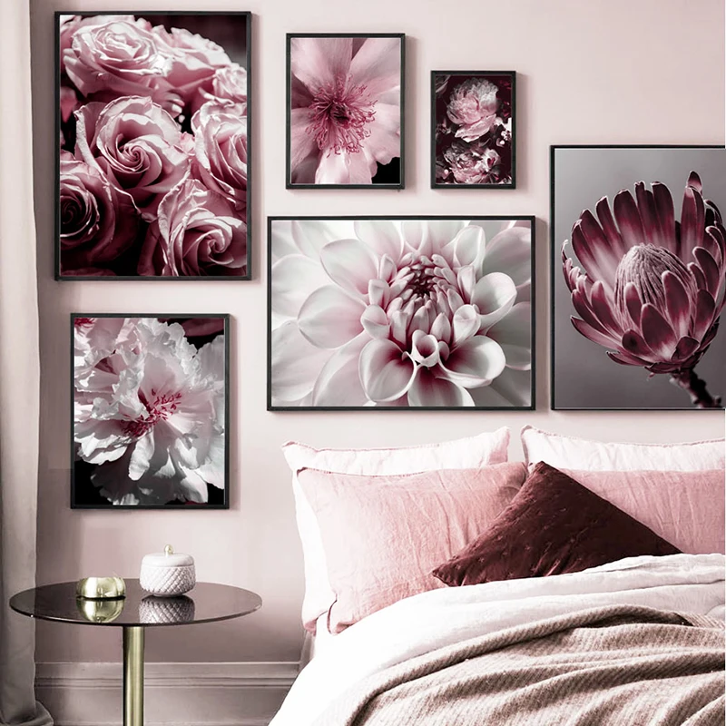 Скандинавские плакаты и принты, большие розовые пионы, розы, цветы,...