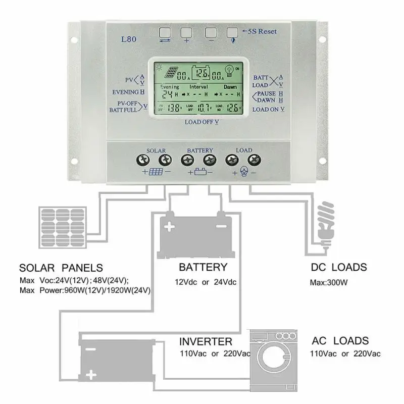 80A 60A со слежением за максимальной точкой мощности, Солнечный Контроллер заряда 12V 24V ШИМ Авто Панели солнечные контроллер Панели солнечные Батарея регулятор ЖК-дисплей Дисплей таймер